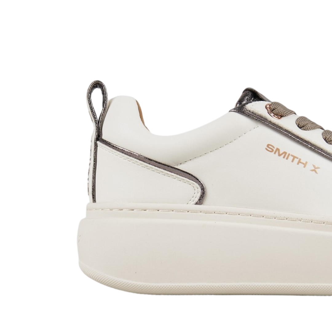 Clean, linear, timeless. STONE is the minimal sneaker by Smith X, which combines urban spirit and refined taste in a unisex design designed to last over time, in this white version with silver laminate details. Logo on the side. 50 mm sole. 10 mm insole.