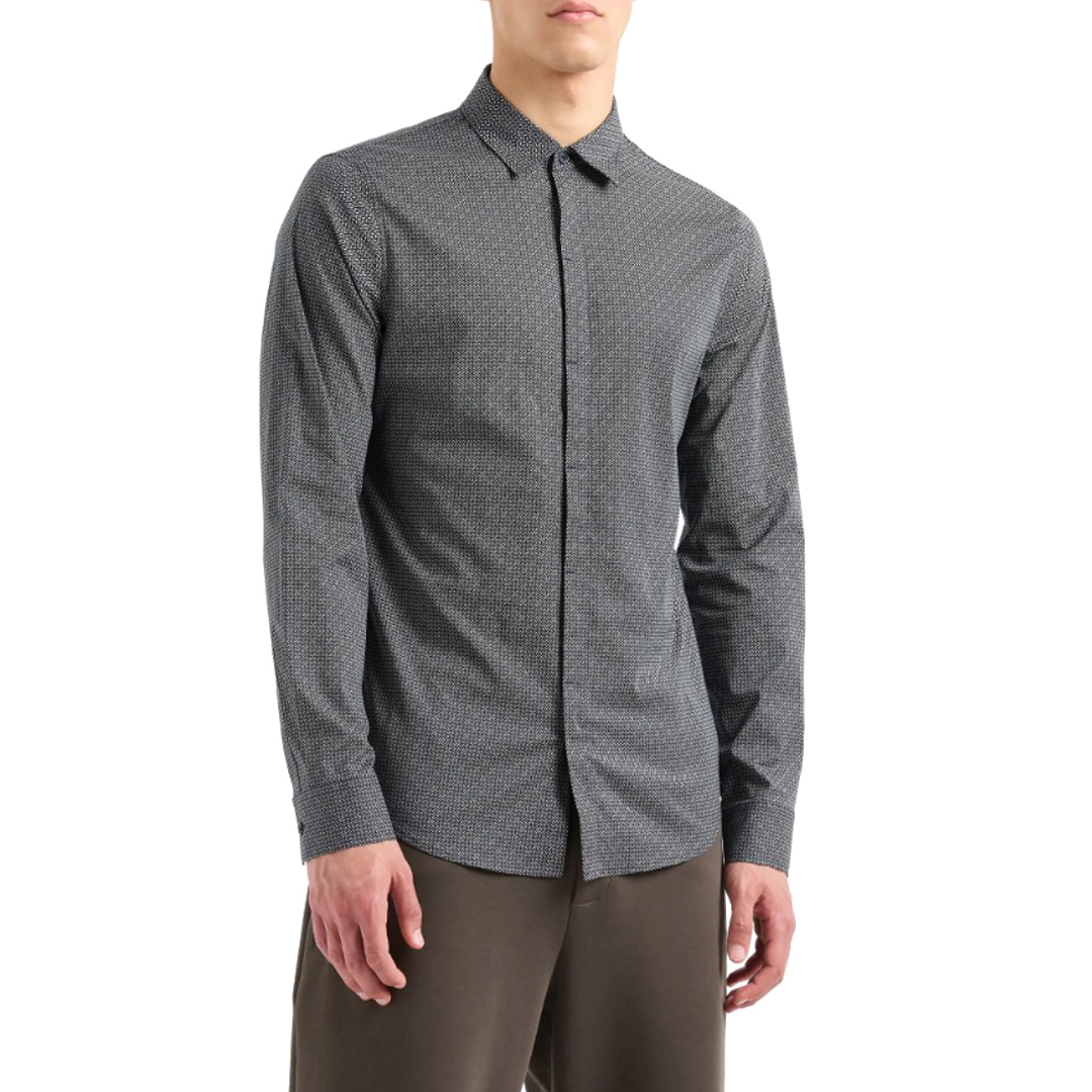 The comfortable caress of cotton poplin, made more fitted by the stretch fabric tip, characterizes the shirt with a clean and essential cut, with tone-on-tone micro-logo Shirt in stretch cotton poplin Tone-on-tone logo Slim fit
