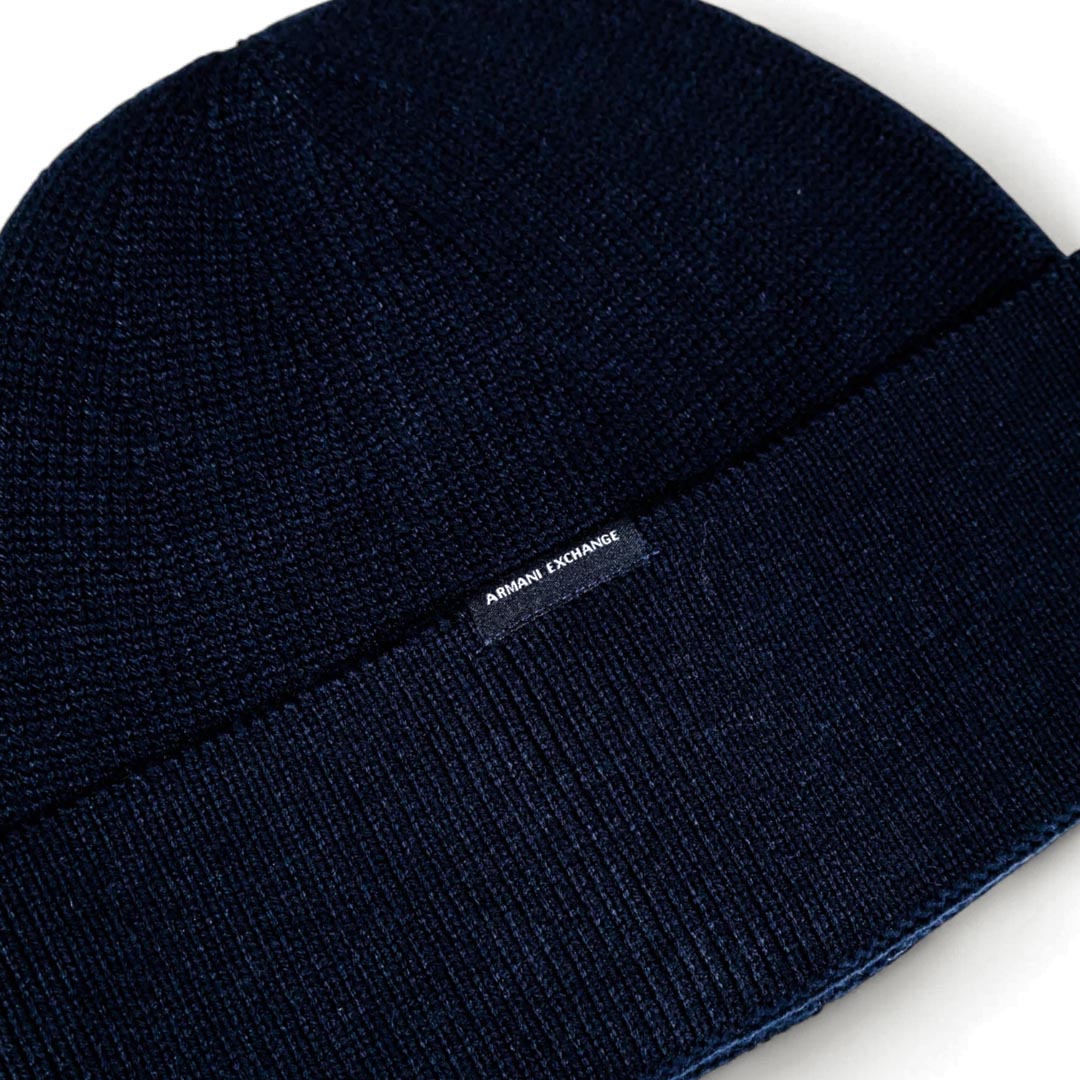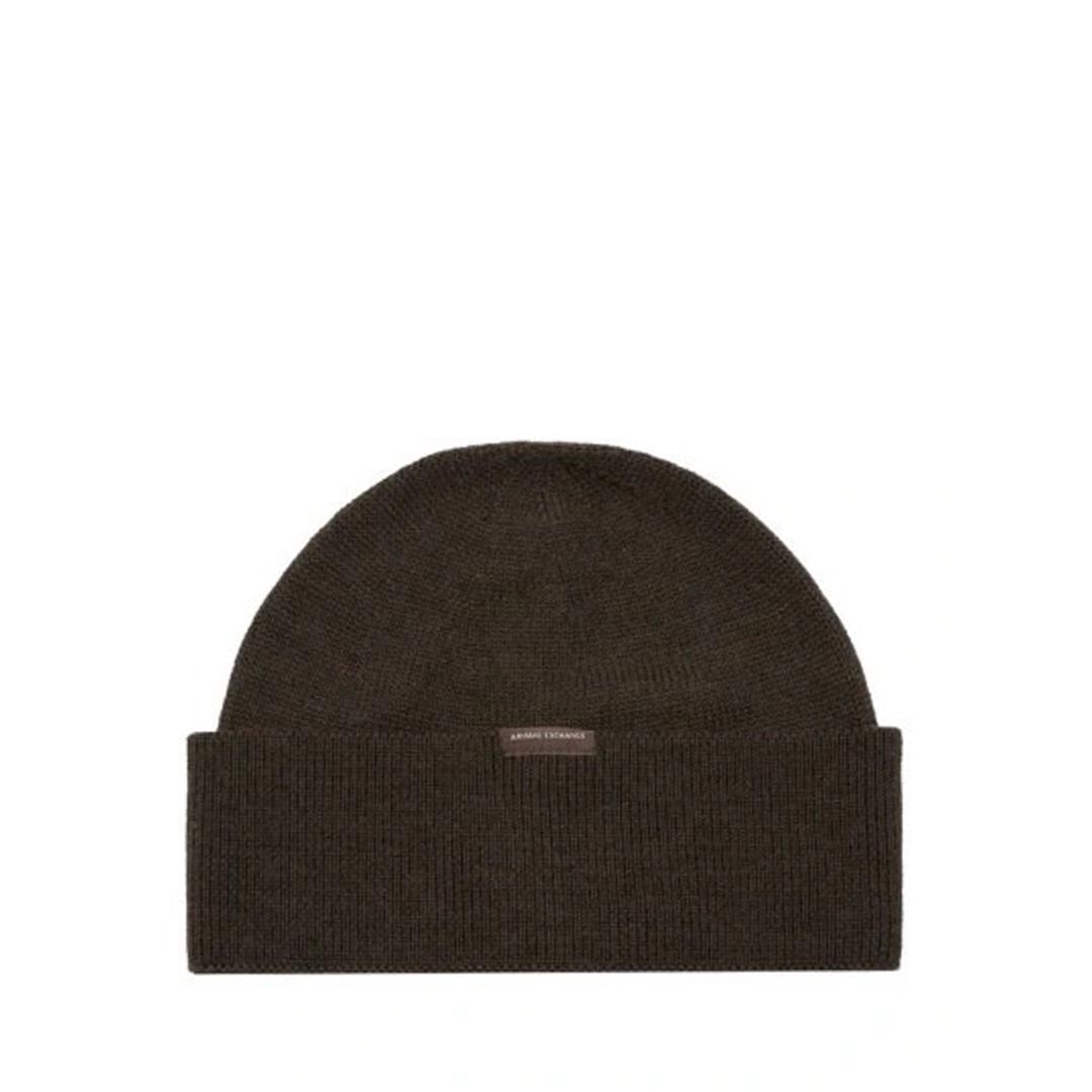 Armani Exchange men's hat in wool blend with logo label, solid color