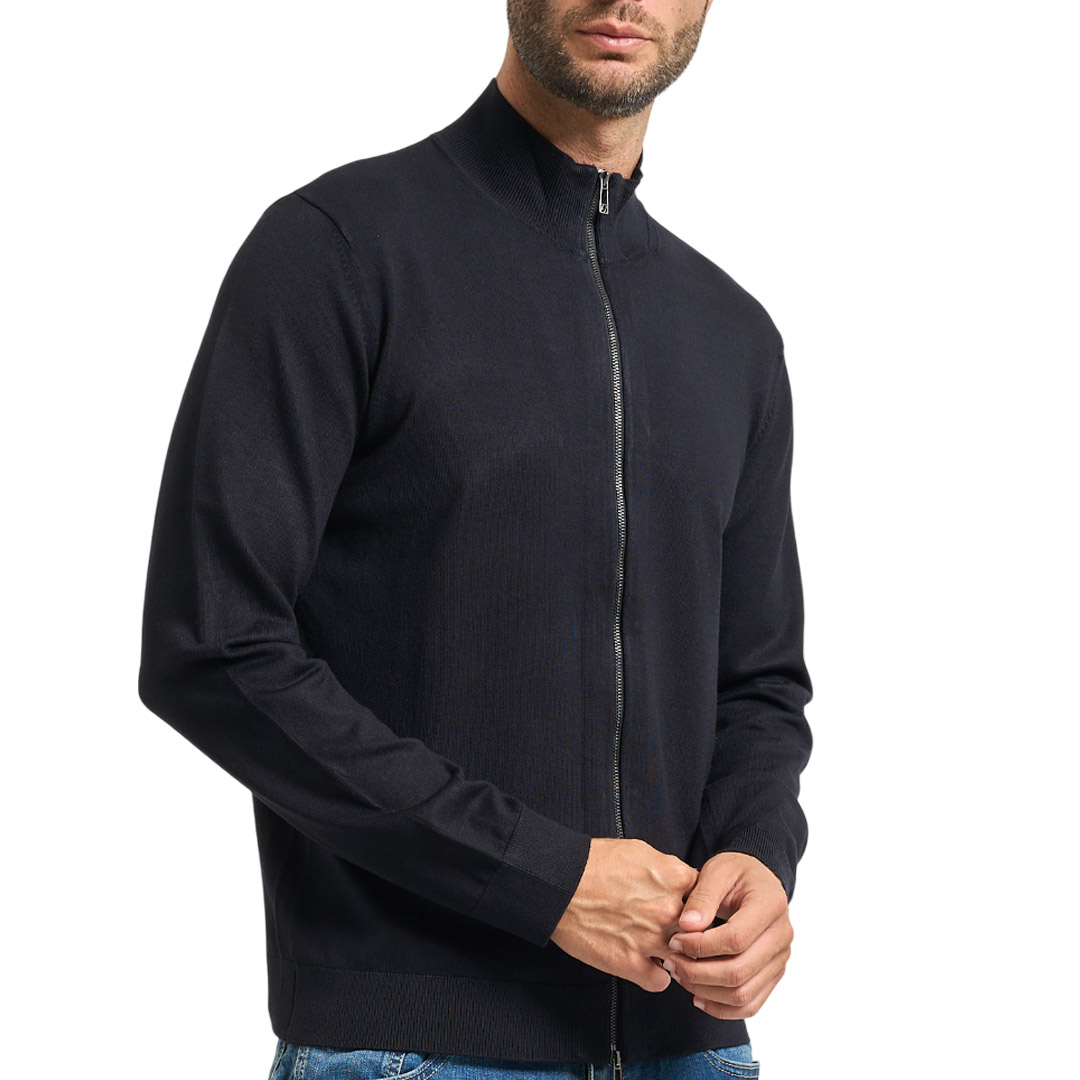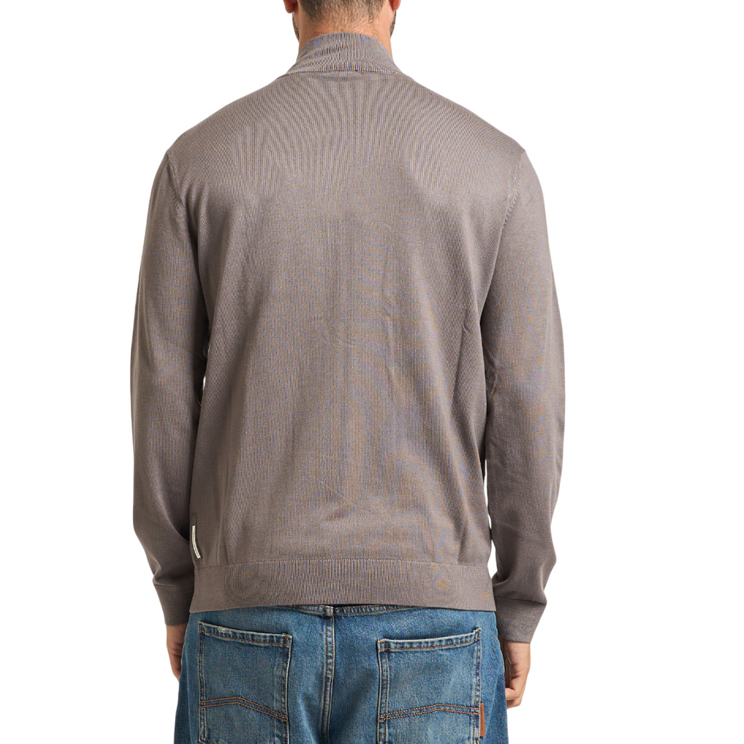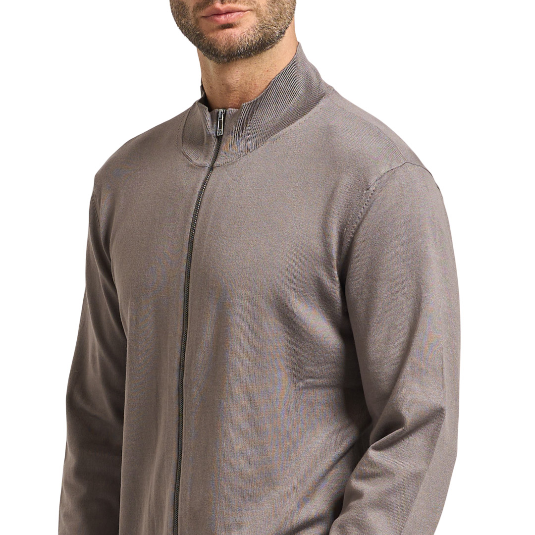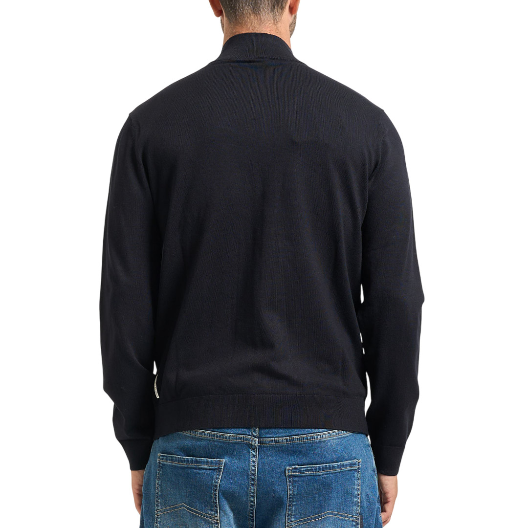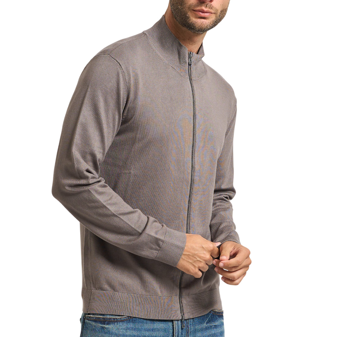 Turtleneck cardigan crafted from a soft yarn, chosen for its warmth and a comfortable feel. Its compact yet flexible texture ensures a comfortable fit and a defined silhouette. This garment is designed for a versatile look, ideal as an additional layer on cooler days or as the main element of a casual yet refined outfit.