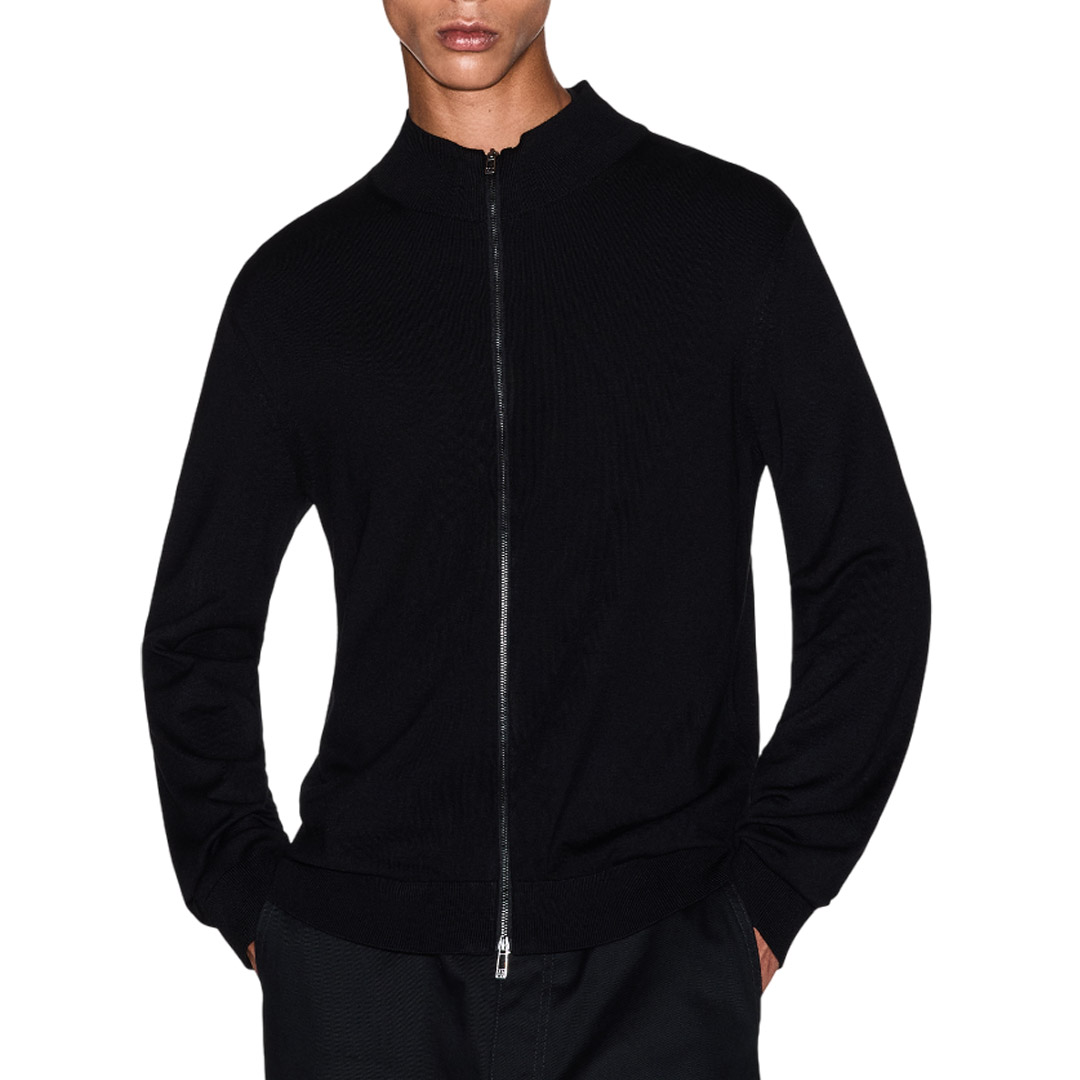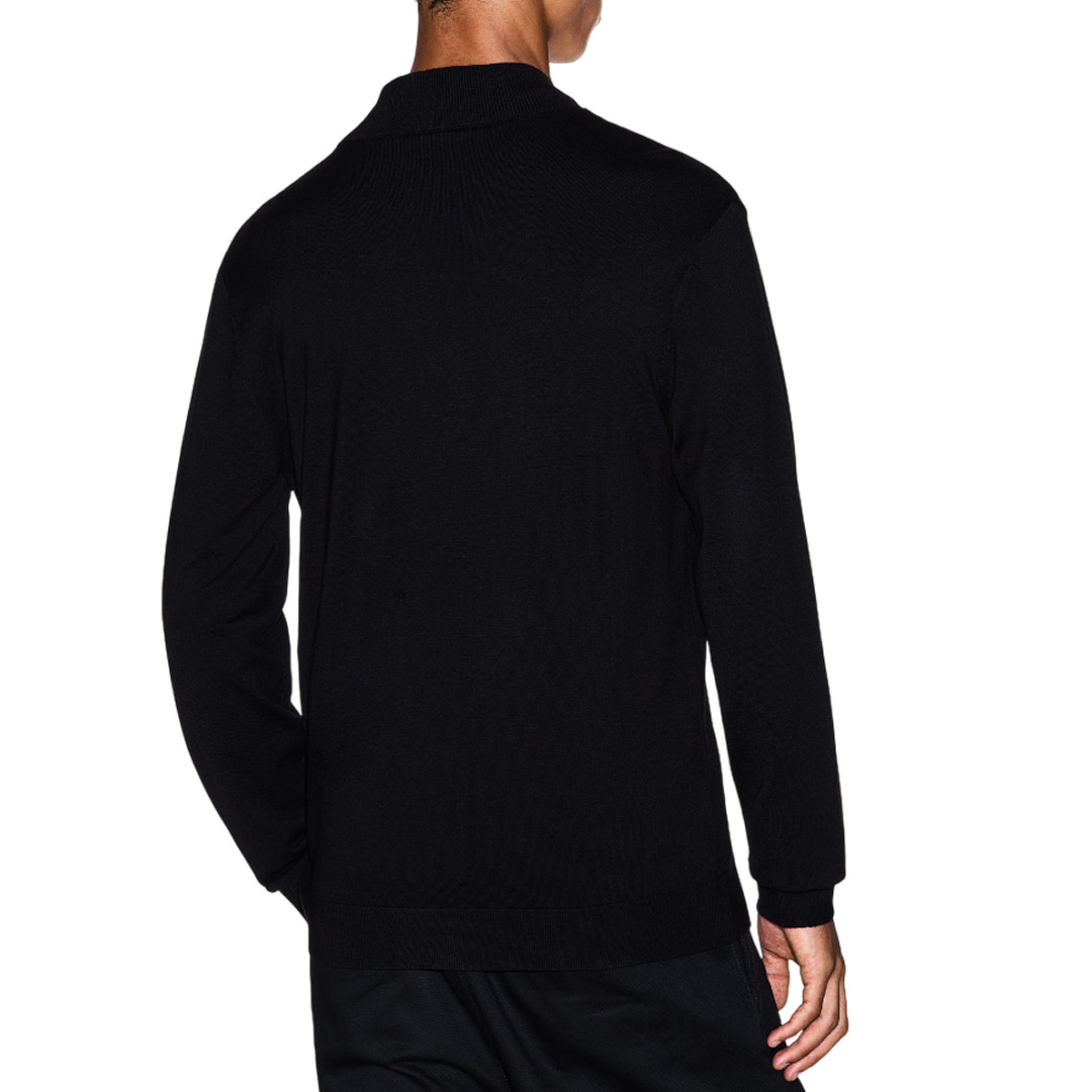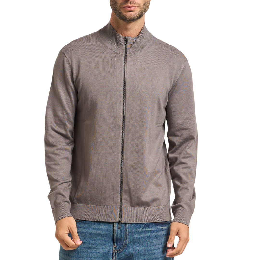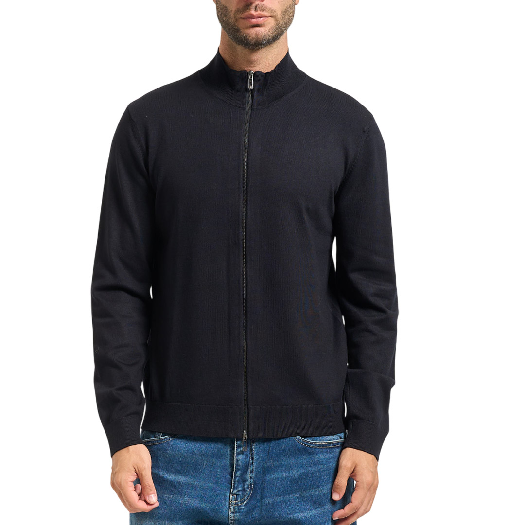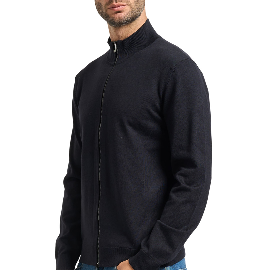 Turtleneck cardigan crafted from a soft yarn, chosen for its warmth and a comfortable feel. Its compact yet flexible texture ensures a comfortable fit and a defined silhouette. This garment is designed for a versatile look, ideal as an additional layer on cooler days or as the main element of a casual yet refined outfit.