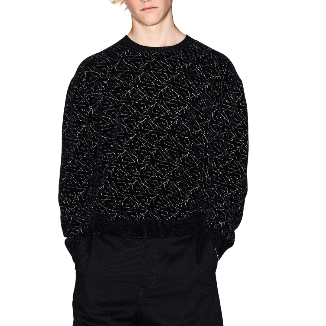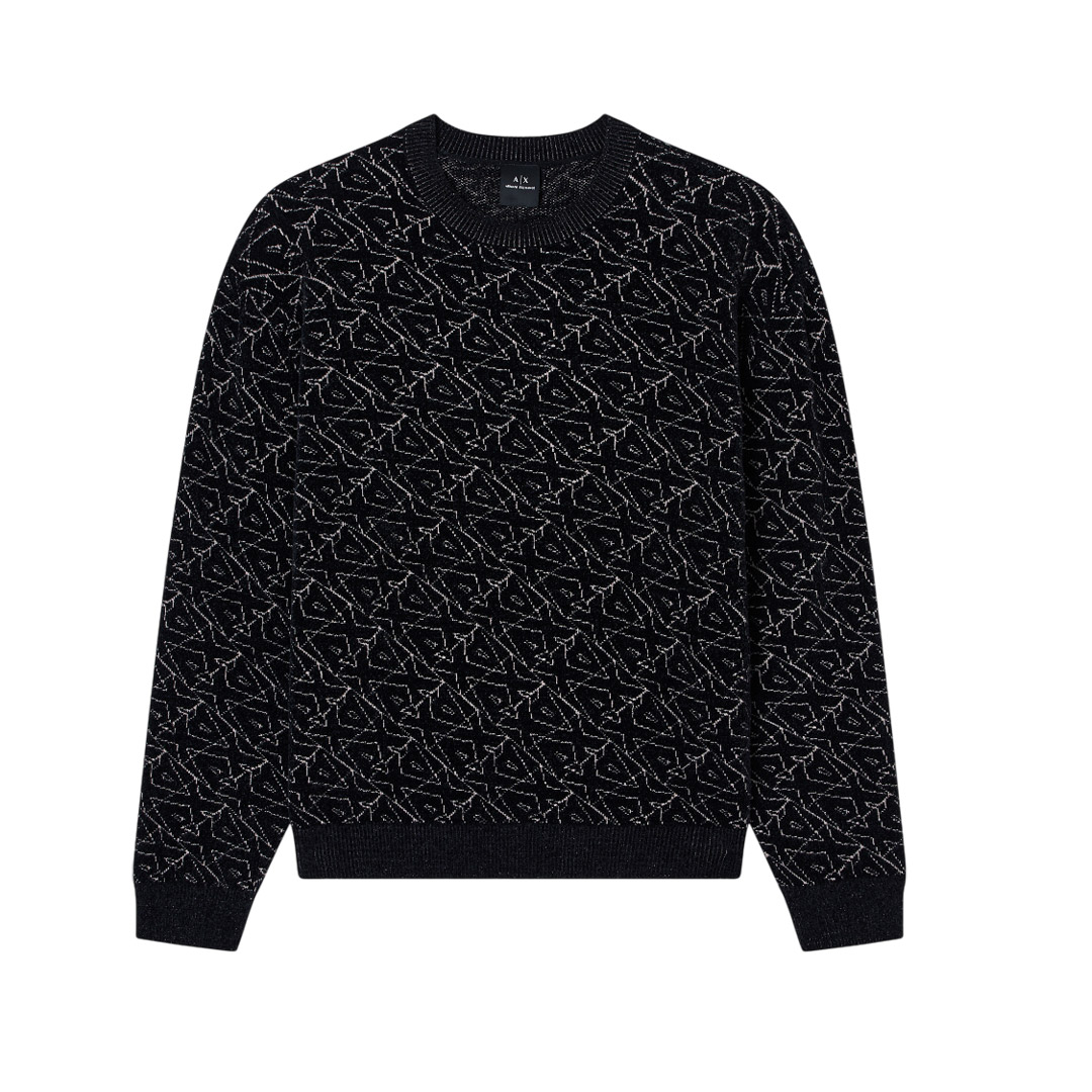 This piece is designed for a contemporary look, ideal for cooler seasons or to add a distinctive touch to a casual outfit. The all-over geometric pattern adds a unique visual element, making this sweater a unique piece for a functional and trendy wardrobe.