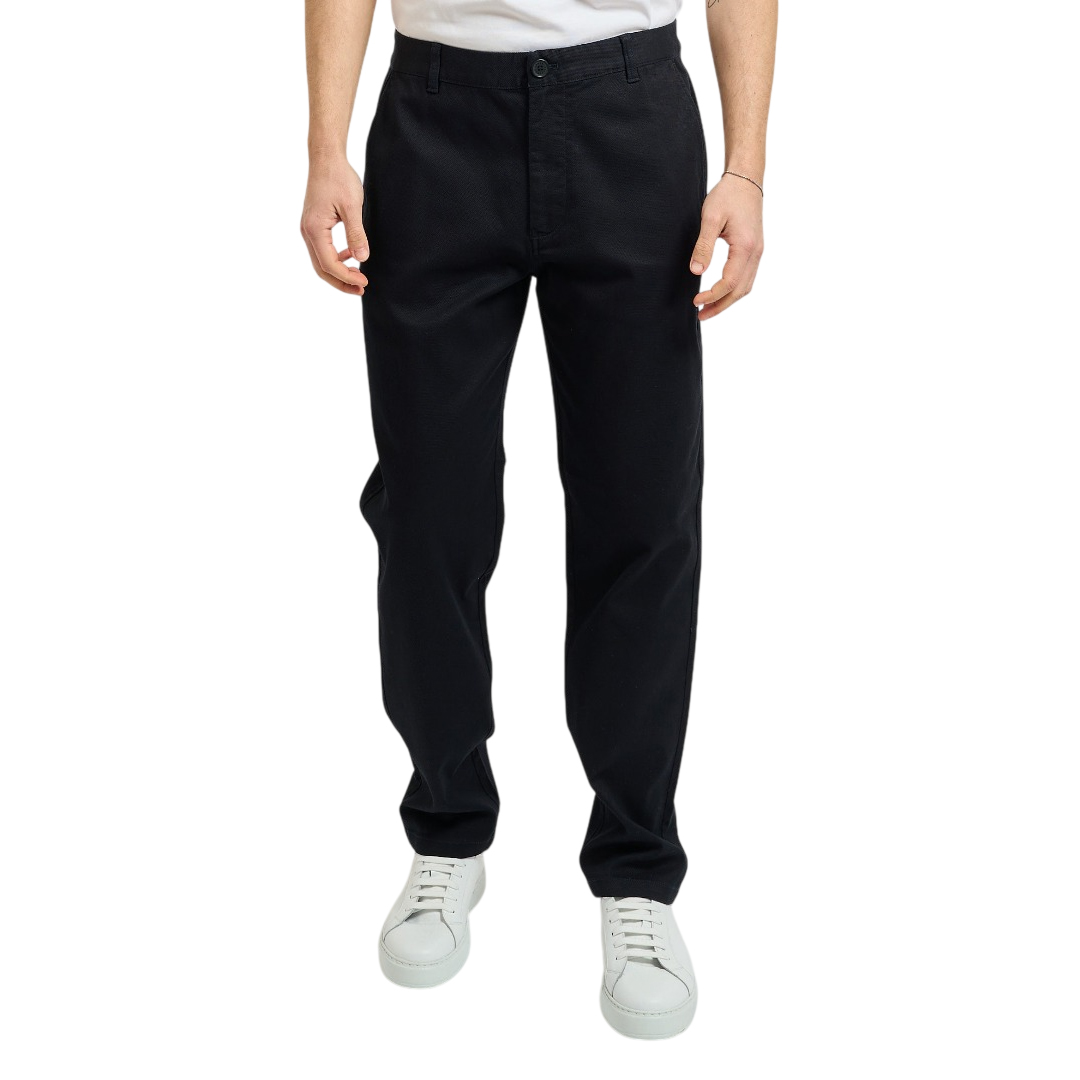 Armani Exchange men's trousers in soft stretch cotton. Regular waist, four pockets, button and zip fly.