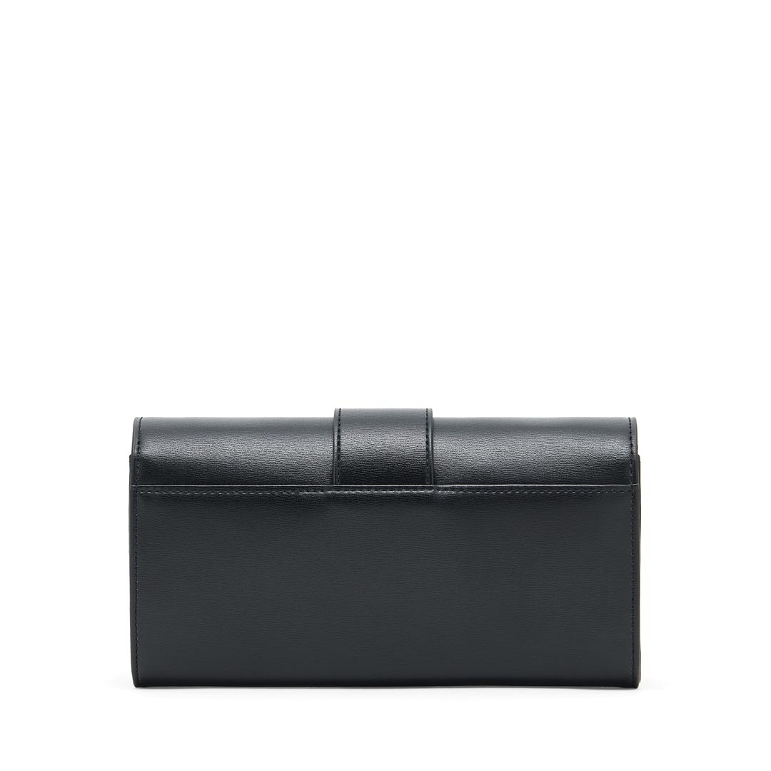 This crossbody wallet is a versatile and refined accessory. Crafted from smooth material, it features an elegant and minimalist design, enhanced by a metal logo that adds a distinctive touch. The removable shoulder strap allows you to wear it as a compact bag or use it as a traditional wallet. The well-organized interior compartments offer space for cards, bills, and other essentials. Perfect for those seeking practicality and style, it is ideal for completing any look with a sophisticated detail. Chain wallet. Smooth material. Chain shoulder strap. Logo detail. Internal slots. Dimensions: 19 x 3 x 12 cm.