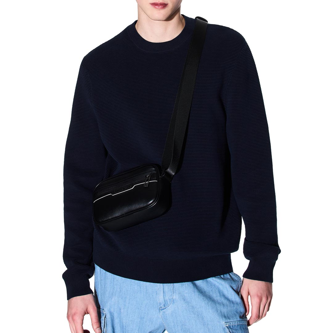 This shoulder bag stands out for its modern and functional design, with a main compartment and a front pocket, both with zip closure for maximum security. The adjustable fabric shoulder strap allows you to wear it comfortably cross-body, adapting to your look and needs. The Armani Exchange logo and the metal A|X logo detail on the front add an iconic and refined touch. Main compartment with zip closure External front pocket with zip closure Adjustable fabric shoulder strap Printed Armani Exchange logo detail and metal A|X logo on the front Metallic finishes Dimensions: 5 x 13.5 x 19 cm
