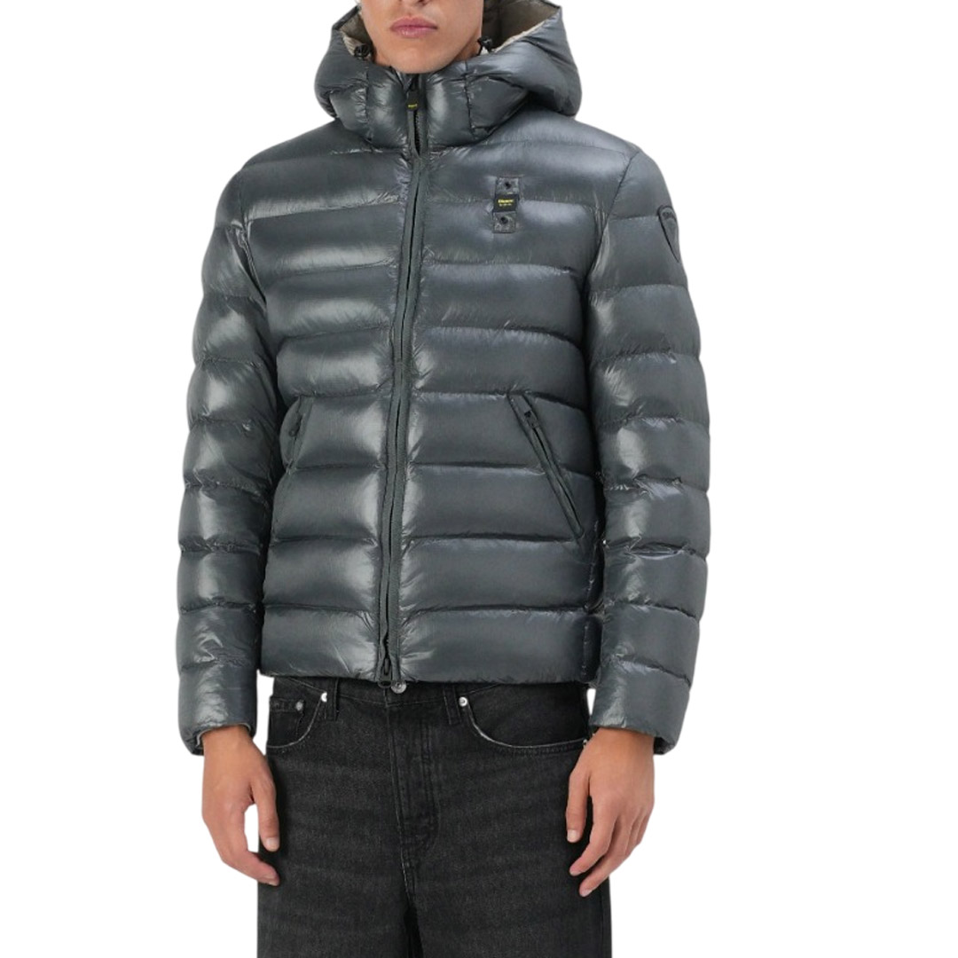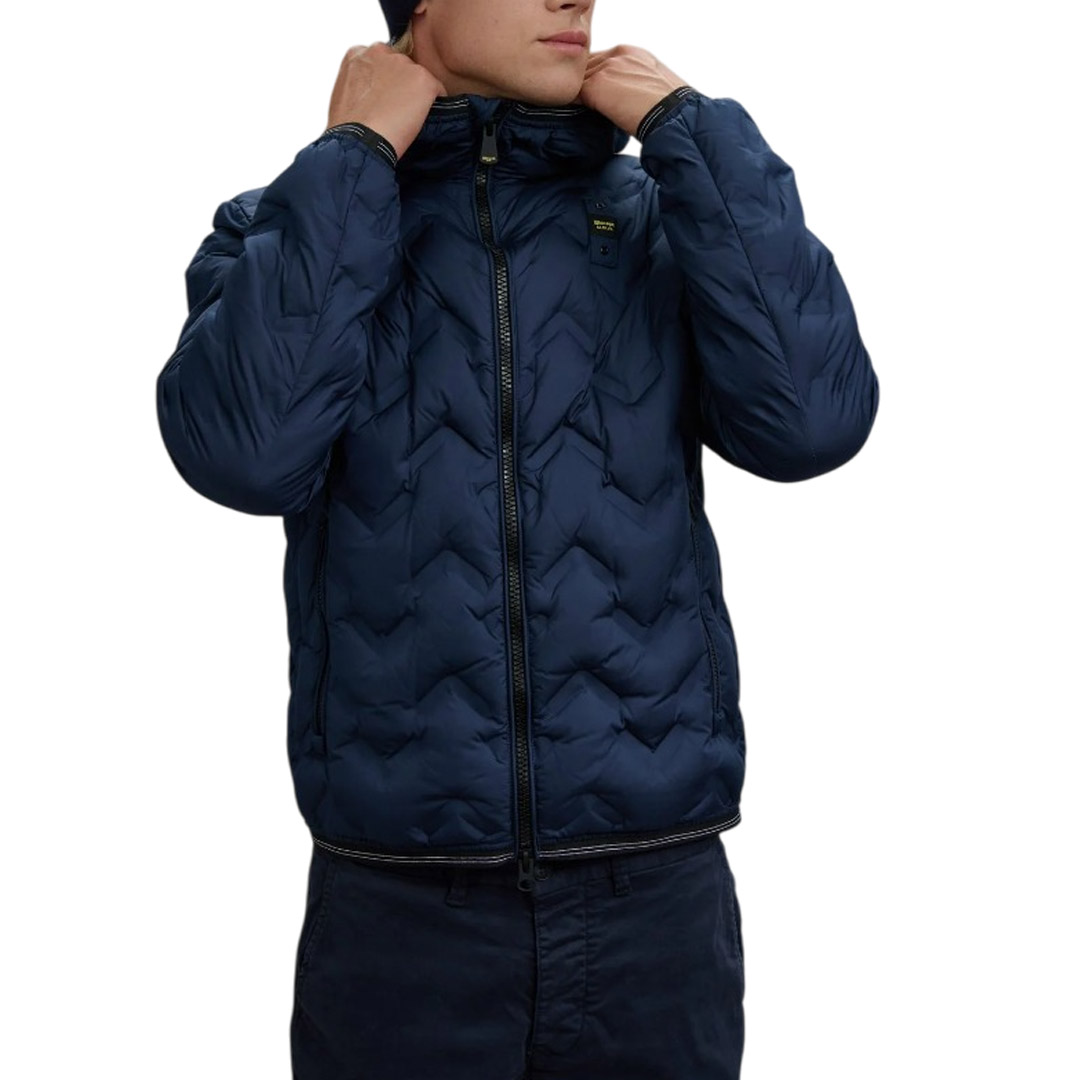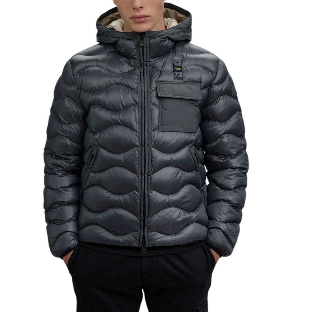 Water-repellent jacket in micro-rip nylon with a light check pattern. Padded garment for maximum warmth, comfort and to maintain its shape over time. • Made of micro-rip nylon • Lined in contrasting-coloured nylon • Padded with Sorona® Aura wadding • Concealed zip fastening • Pockets with hidden zip • Internal pockets with Velcro • Loop with logo