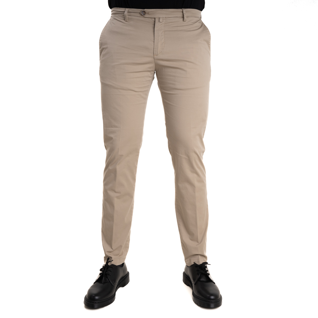 SS 2023 men's trousers, closure with zip and buttons, two side pockets, two back welt pockets, belt loops, solid colour, slim fit