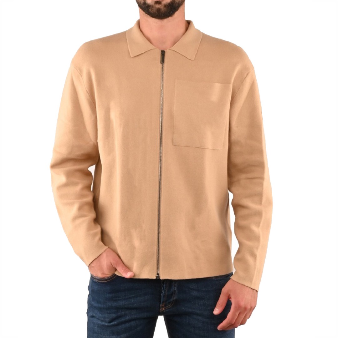 Cardigan polo shirt with full zip and chest pocket