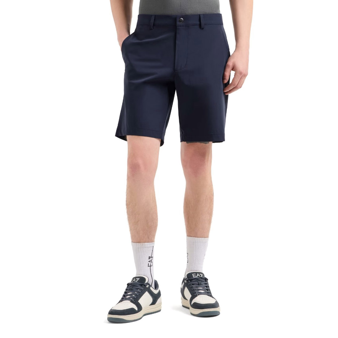 Bermuda shorts made from VENTUS7 technical fabric, which ensures optimal ventilation throughout your workout, guaranteeing a constant temperature. The model, personalized with the contrasting EA7 logo, with side pockets and button and zip closure, is part of the Golf Pro collection. A proposal dedicated to enthusiasts who prefer a technical but at the same time refined look. Perfect garments made from fabrics that combine comfort, performance and style, to accompany you on the course in different weather conditions. Stylistic and at the same time functional details complete and make the proposal versatile in step with trends. Slim fit Waistband with loops Button and zip closure Two side pockets Two pockets on the back Contrasting EA7 logo