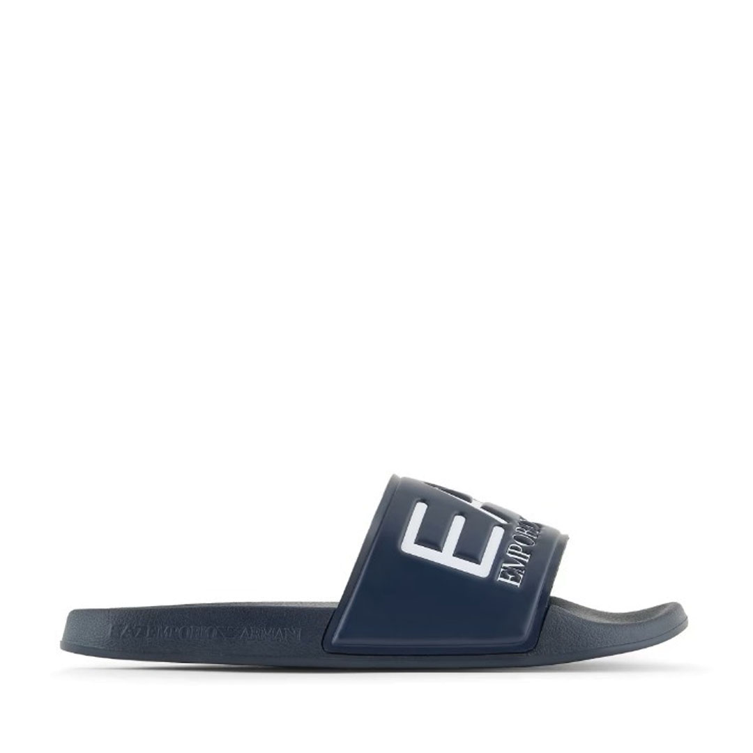 Slides with oversized band embellished with the EA7 logo. A versatile style, perfect for the pool or the beach and to take with you to the gym. Band with EA7 logo Non-slip rubber sole