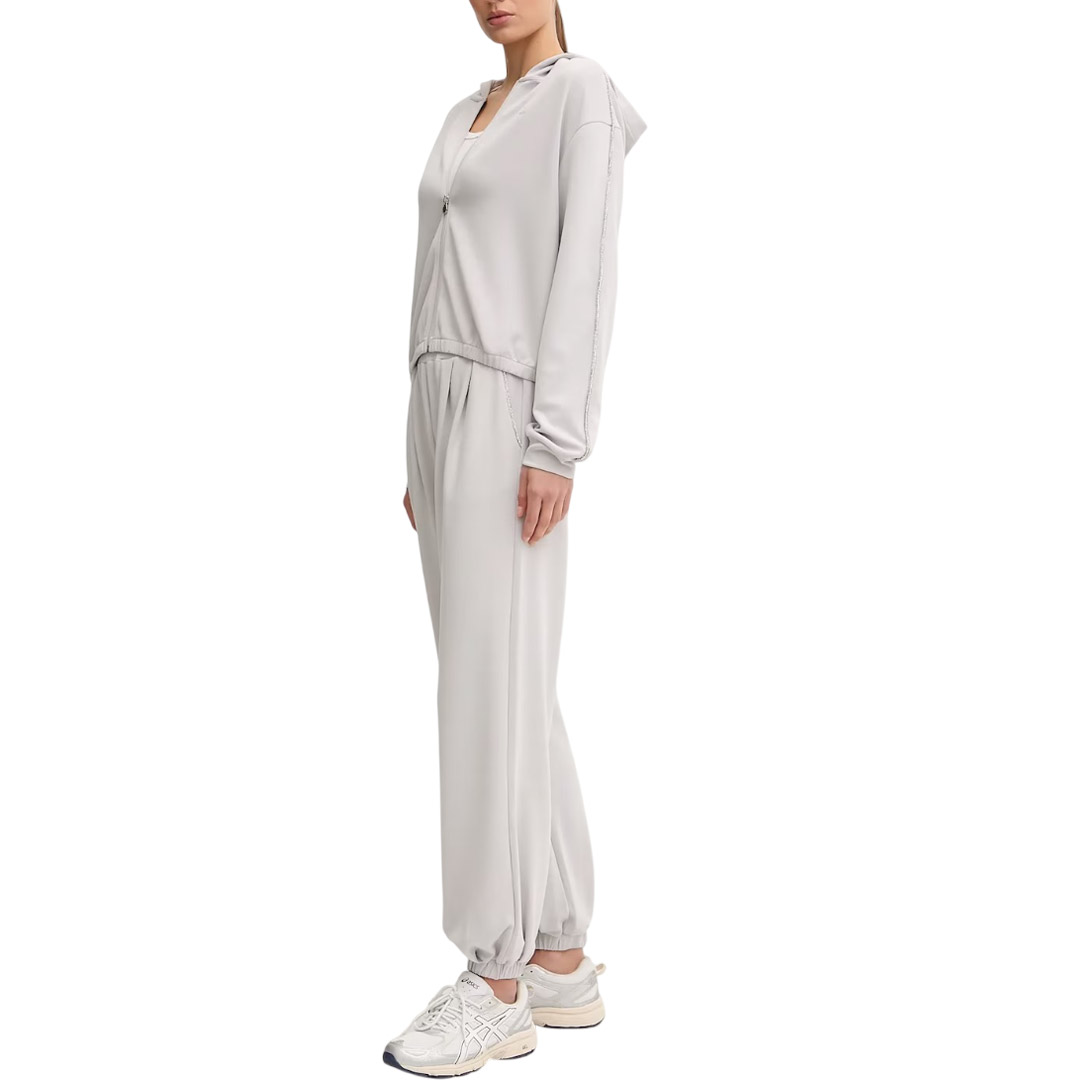 Clean, essential lines define these joggers, featuring a rhinestone detail that outlines the side pockets for a touch of sparkle. A feminine style in stretch modal interlock, ideal for ensuring comfort during both workouts and relaxing moments. Perfect for pairing with T-shirts from the collection to create versatile and trendy total looks.