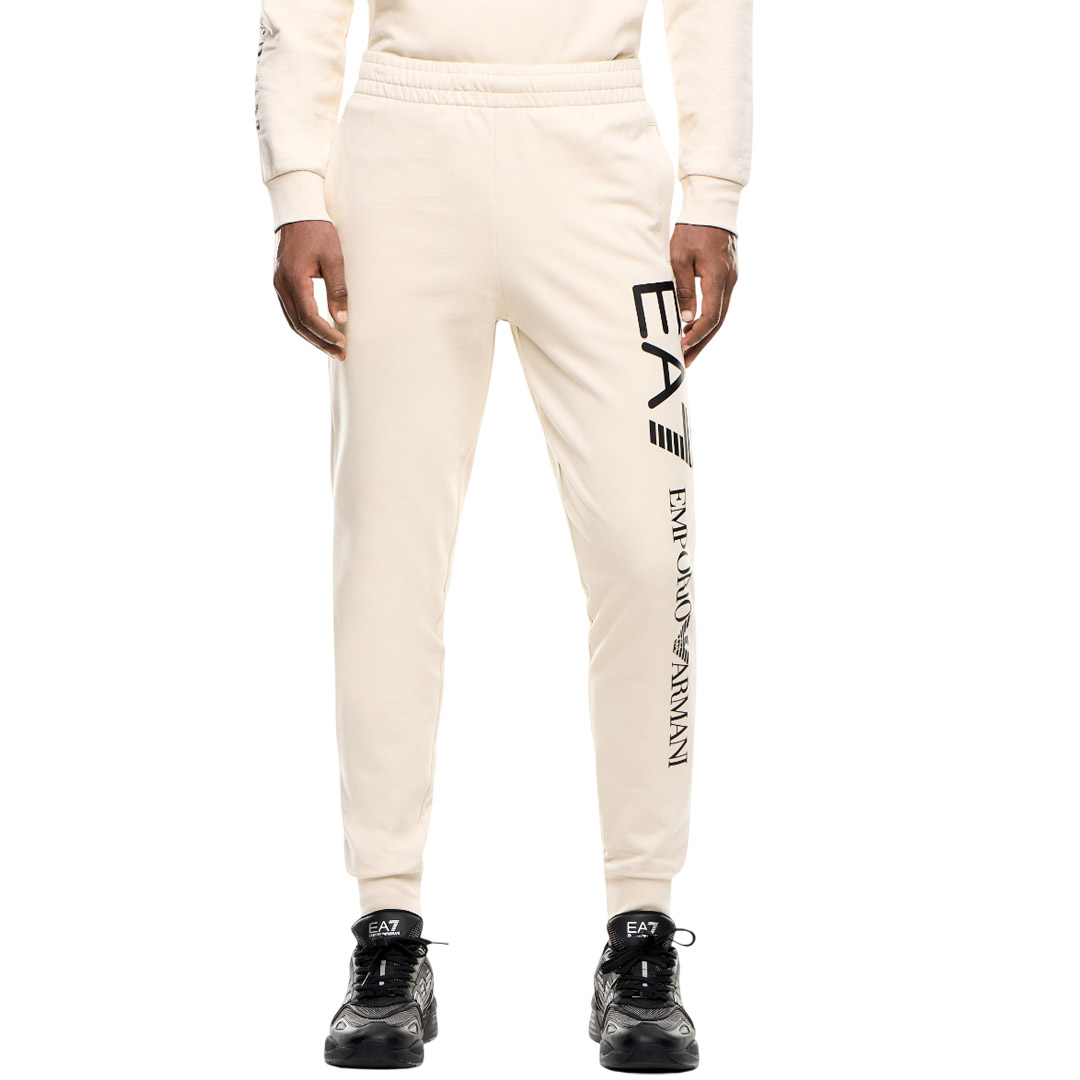 Jogger pants made of soft cotton, perfect for versatile outfits, from the gym to outdoor training. The style is personalized with the contrasting EA7 Emporio Armani logo on the left leg, reminiscent of other pieces from the collection.