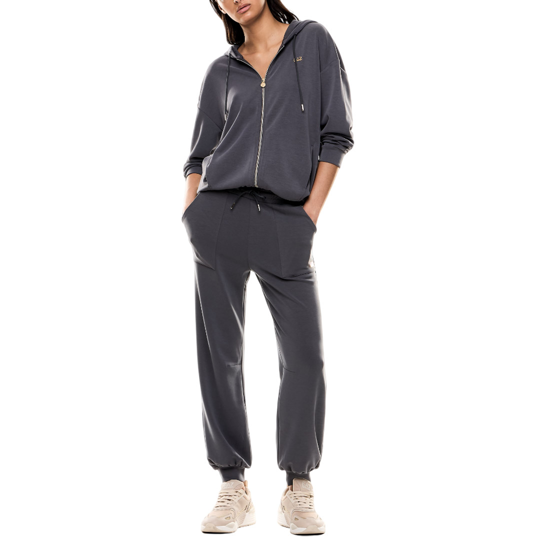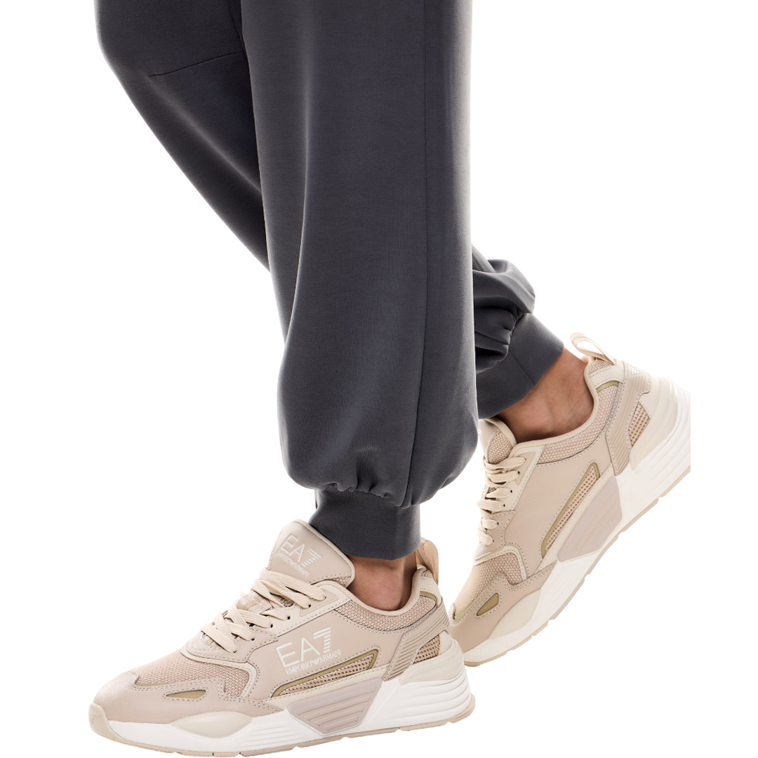 Joggers made of soft stretch modal blend fabric, personalized with the EA7 logo charm on the left side. A feminine style with a drawstring waist and two side patch pockets, ideal for ensuring comfort during both your workouts and your downtime. Perfect for pairing with sweatshirts from the collection to create versatile and trendy total looks.