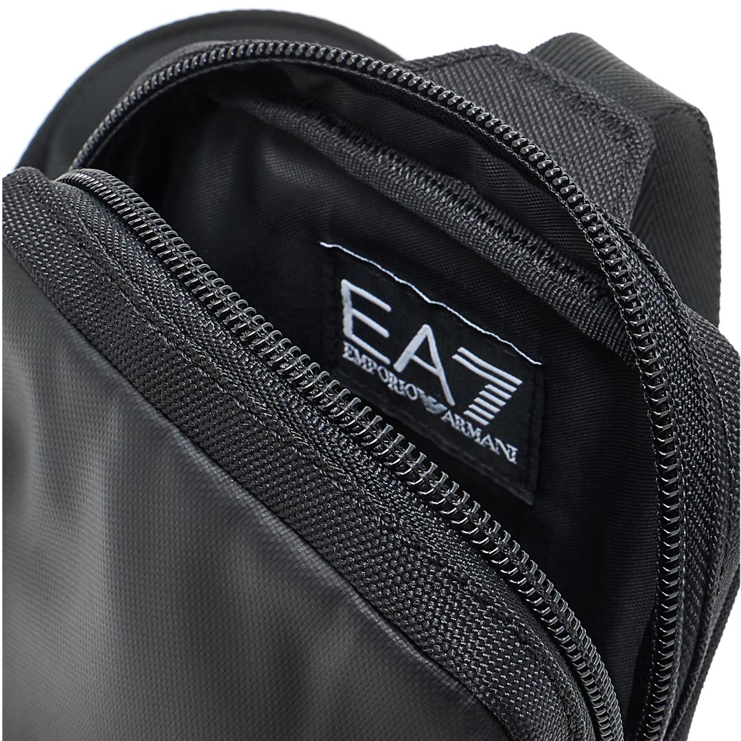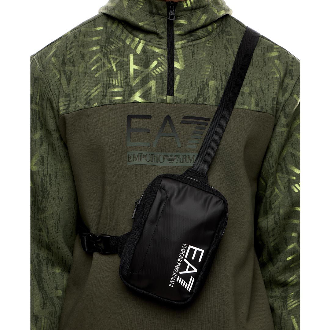 Recycled fabric shoulder bag with a simple design and a strong sporty feel. A versatile model, perfect for sports and leisure, embellished with a large contrasting logo and featuring a second convenient zip pocket. Adjustable ribbon shoulder strap with strap. Main compartment with zip closure. One external zip pocket. Tone-on-tone EA7 logo. Dimensions: 15.5 x 5.5 x 20.5 cm. Capacity: 2 litres.