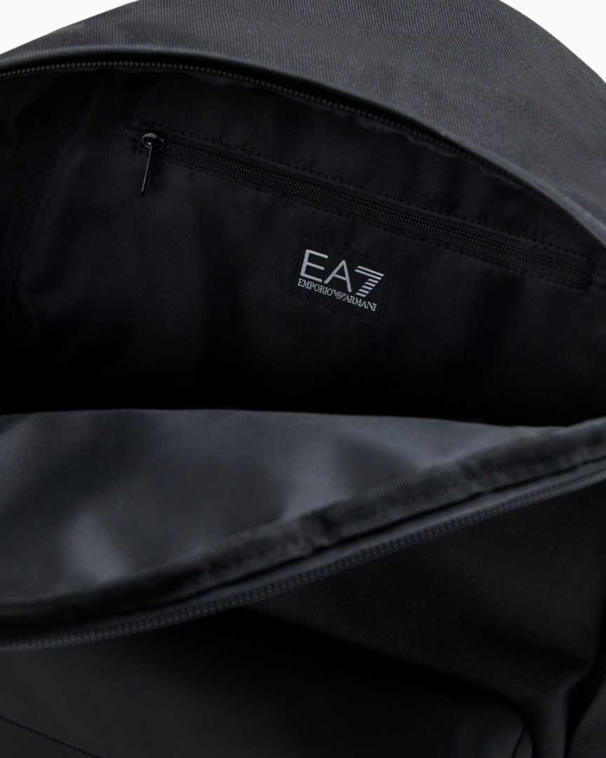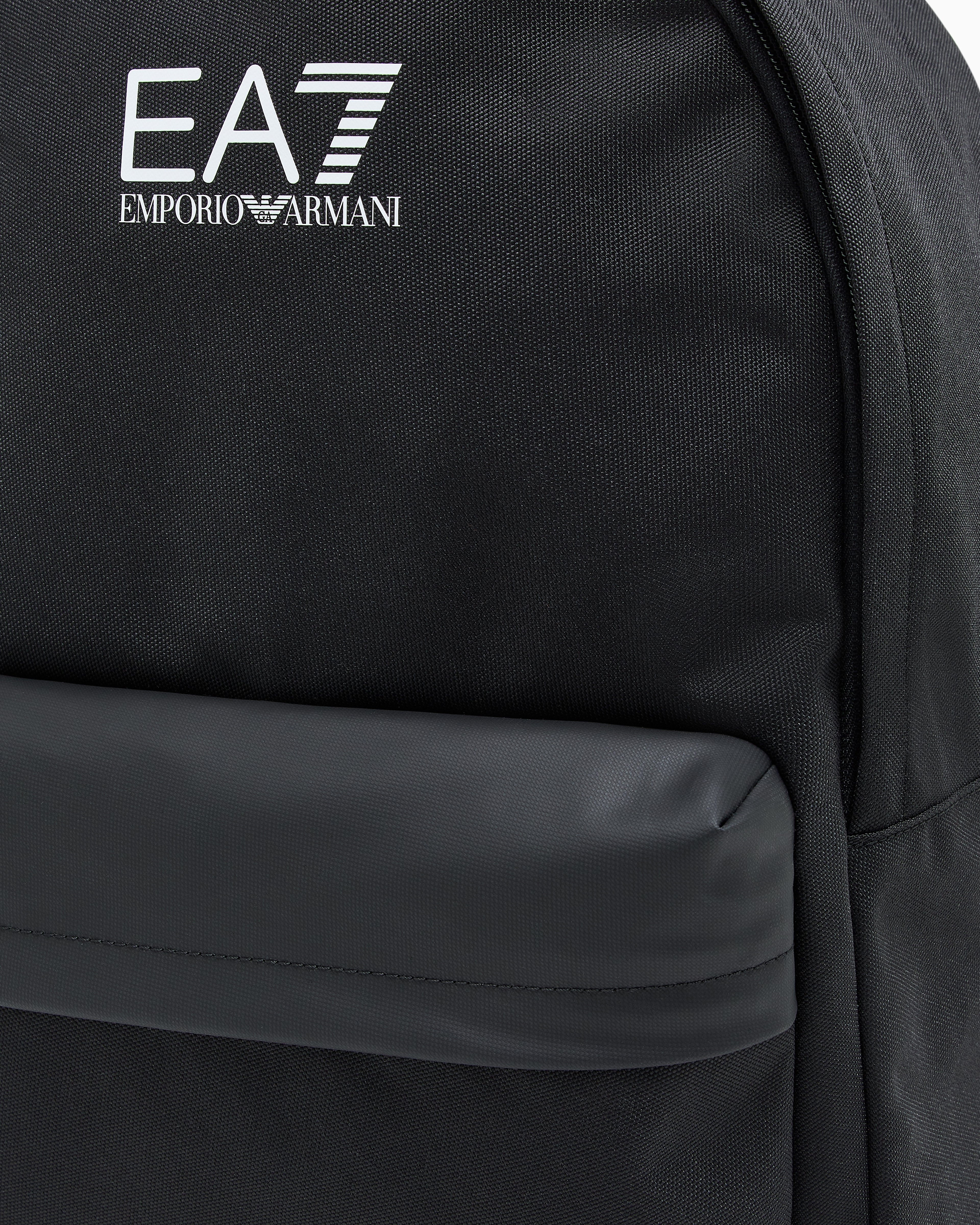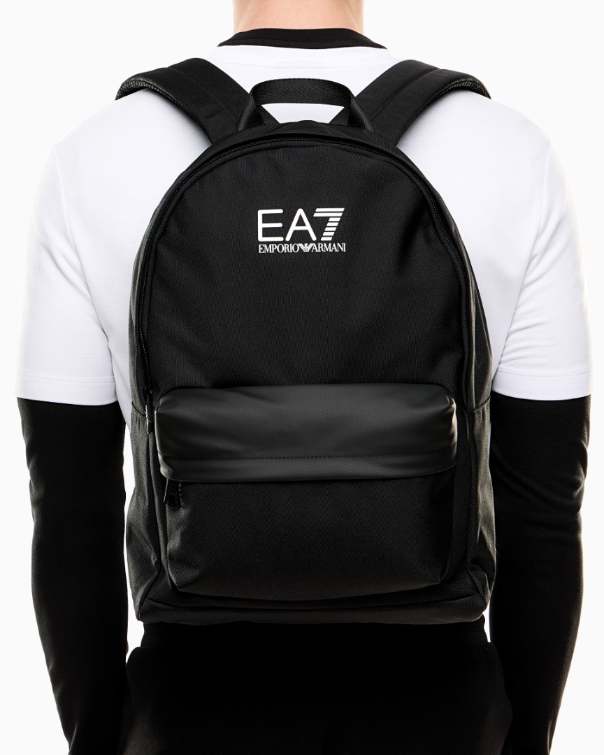 Essential and versatile backpack, made of technical fabric and featuring a maxi logo that embellishes the front. A perfect model for casual and sporty looks, equipped with a convenient internal laptop pocket, adjustable shoulder straps and a large external zip pocket. Front zip closure. Front zip pocket. Contrasting maxi EA7 logo. Adjustable padded shoulder straps. Dimensions: 29 x 40 x 17 cm. Capacity: 20 litres.