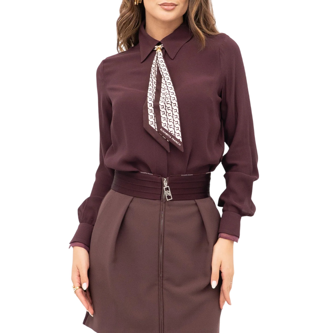 Elisabetta Franchi B'Georgette Shirt With Scarf' Merlot Ca09356E2 153757