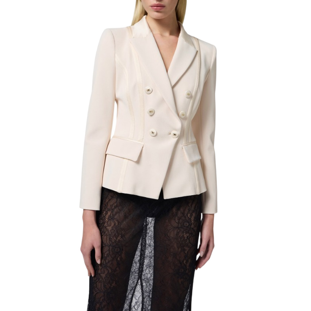 DOUBLE-BREASTED CREPE JACKET WITH SATIN LAPERS