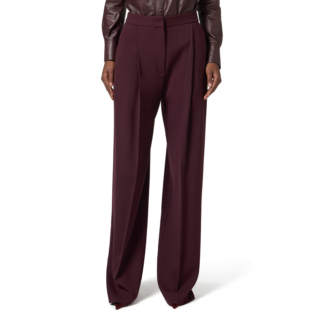 Regular-fit crepe trousers. Featuring double pleats to define the volume, they are embellished with gold-tone metal logo details on the waistband. Gold-tone metal logo details. Internal zip with hook.