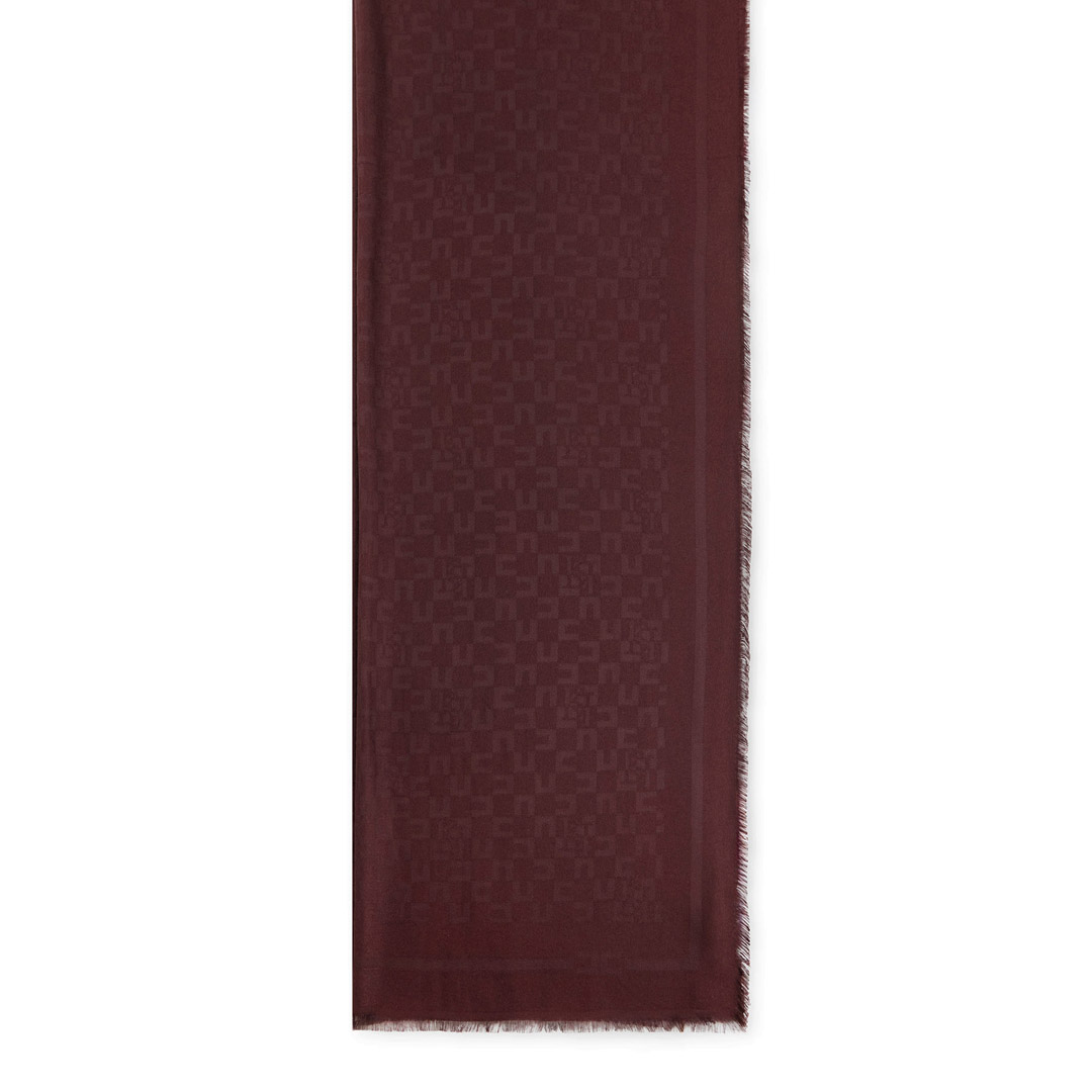 Rectangular scarf featuring an all-over logo pattern. Solid-color and matching frame with logo and frayed edges for added movement. All-over logo pattern. Frayed edges. Dimensions: 70 x 190 cm.