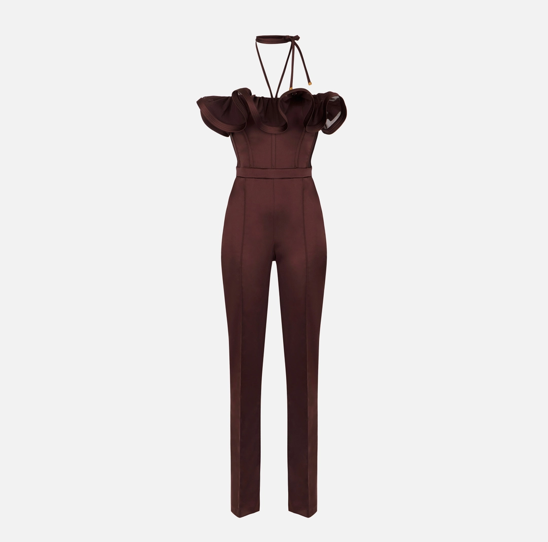 SATIN JUMPSUIT WITH MAXI RUFFLE