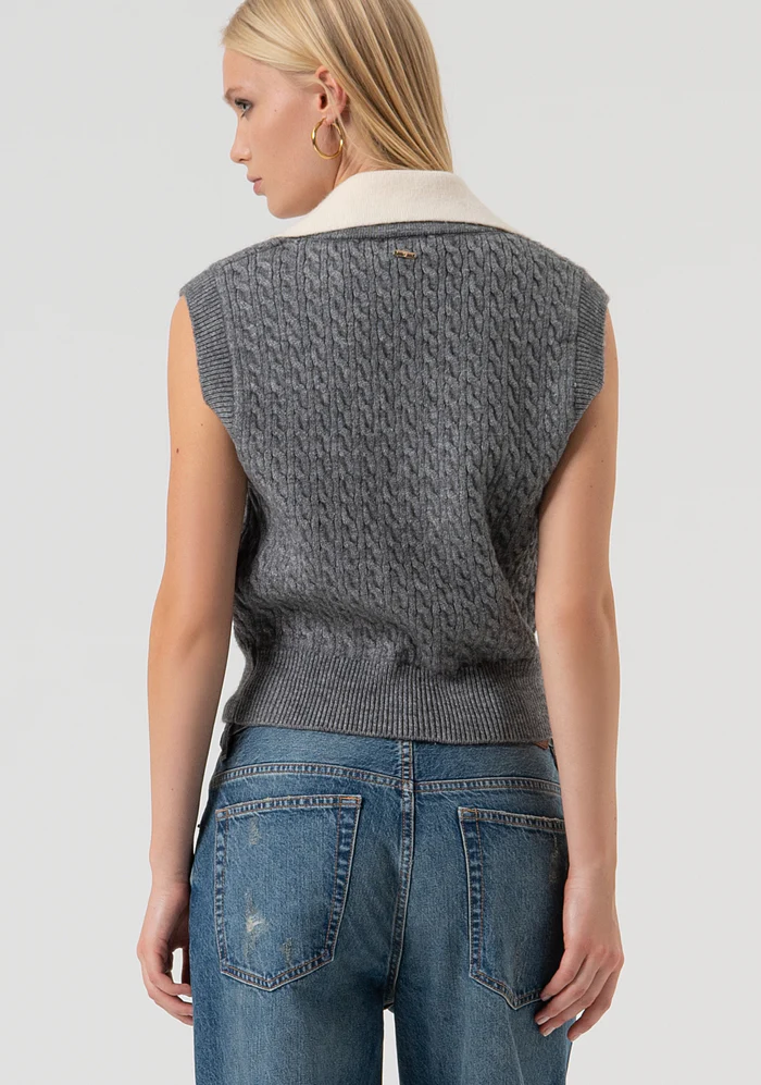 Regular fit knitted vest with cable stitch, classic collar and V-neck, and patch pockets