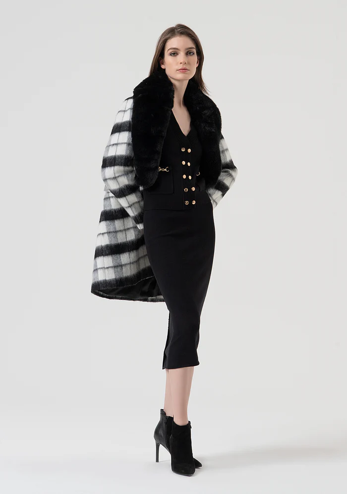 Slim midi knitted skirt, regular waist, and with back slit with button