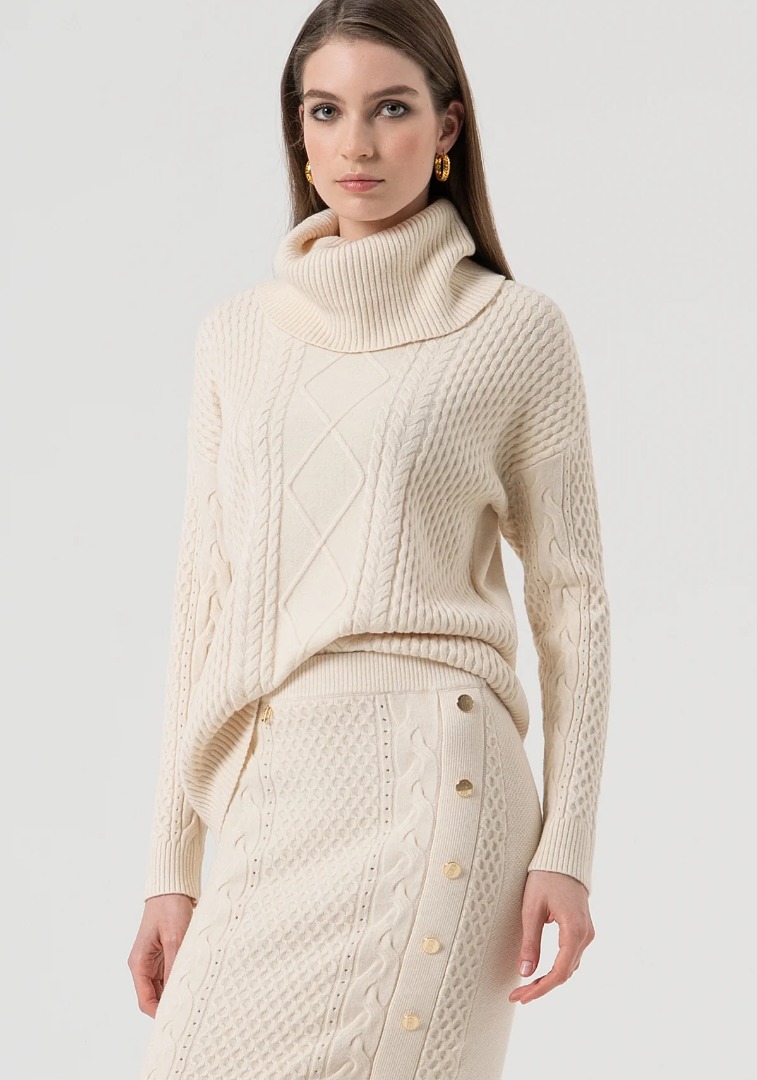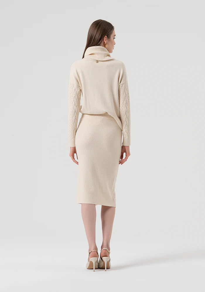 Slim midi skirt in cable knit, regular waist, and with button slit on the side