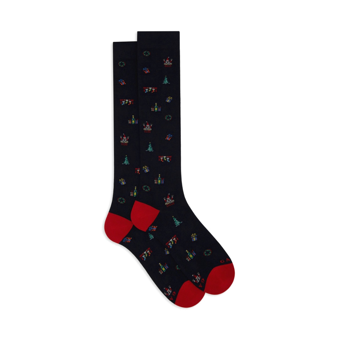 Men's long socks in very light cotton in shades of blue, made in Italy. Very soft to the touch, created for those who do not give up a detail of style. The Christmas mix pattern makes them original and cool. Suitable for a formal or sparkling look. The perfect fit Gallo, synonymous with Italian quality since 1927.
