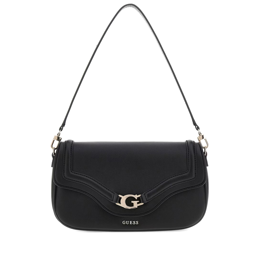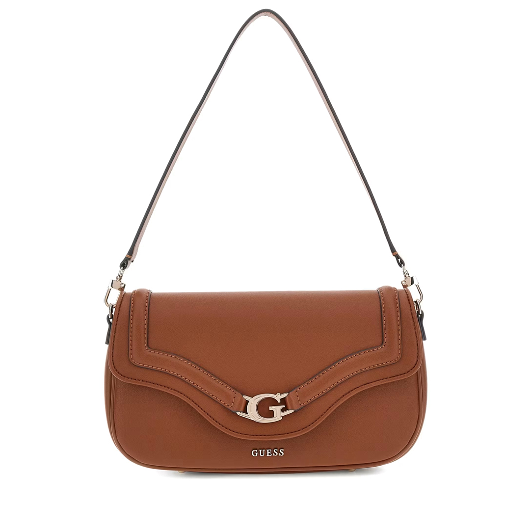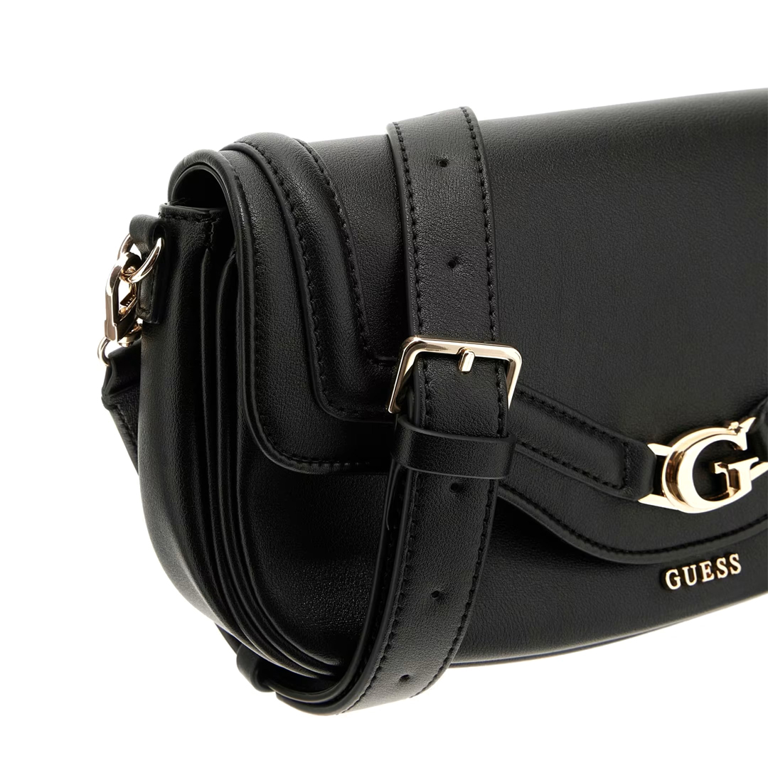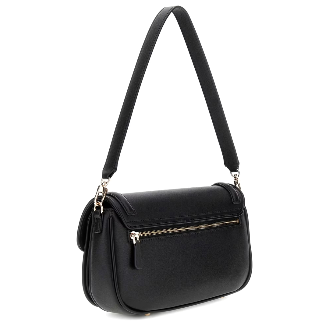 Faux leather exterior. Flap closure with double button. Pale gold-tone hardware. Family: Dea. Personalized logo lining. Inside and back zipper pocket. Metal logo lettering on the front. Dimensions: 29 x 15 x 6 cm. Removable handle, length approx. 45 cm. Adjustable and removable shoulder strap, length approx. 110/130 cm.