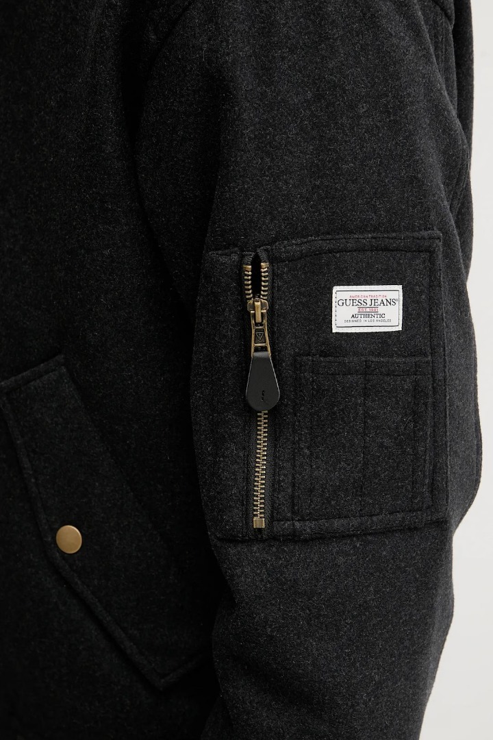 Bomber jacket from the Guess Jeans collection. Lightly lined in smooth fabric. Crafted from extremely comfortable, high-quality material. - GUESS JEANS® uses recycled materials to make its products, without compromising quality or durability. - Relaxed fit for complete freedom of movement. - Dropped-shoulder sleeves ensure mobility. - The sleeves and hem are finished with a trim to protect against adverse weather conditions. - Full-length zip closure with internal storm flap. - Two side pockets with snap and secure closures.