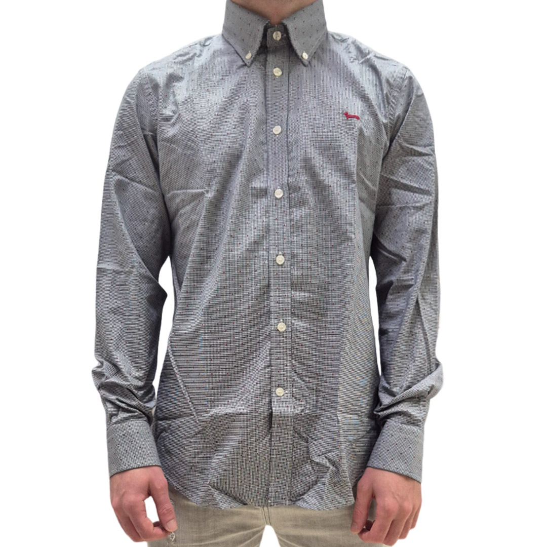 Crafted from fresh and breathable fil coupé cotton, the men's shirt by Harmont & Blaine will add originality to your looks thanks to the all-over micro pied-de-poule motif punctuated by another contrasting all-over micro pattern. The model features a wide collar and is presented in a narrow fit, the ideal choice for those who prefer a slightly tighter fit. This shirt also cannot give up its distinctive symbol: the Blaine dachshund in the form of contrasting embroidery on the chest.