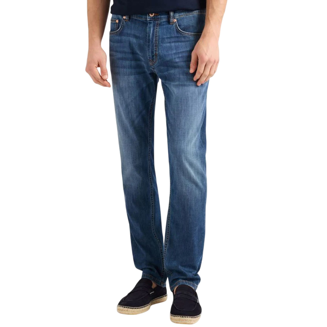 These 5-pocket jeans are crafted from stretch denim for maximum comfort and freedom of movement. They feature a slim, narrow fit with a slightly tapered silhouette. Featuring a zip and button closure, belt loops, and tone-on-tone stitching, they stand out for their clean, versatile design, perfect for both casual and more refined looks. The iconic dachshund embroidered on the front pocket completes the look.