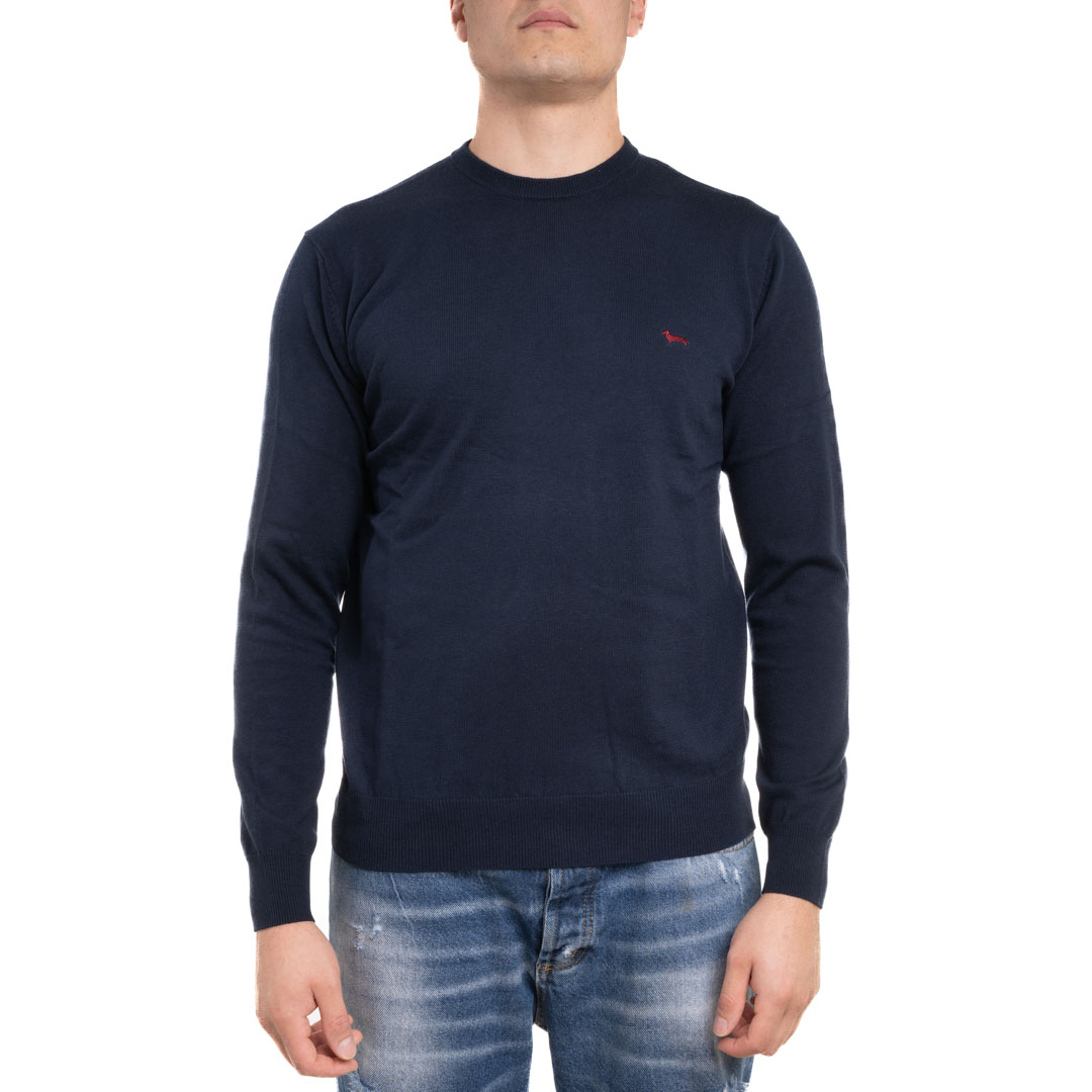 Men's Crew Neck Sweater in high quality Organic Wool and Cotton. The essential and comfortable line, completed by ribbed cuffs and hem. The inevitable dachshund embroidery on the chest finishes this pullover in pure Harmont & Blaine style.
