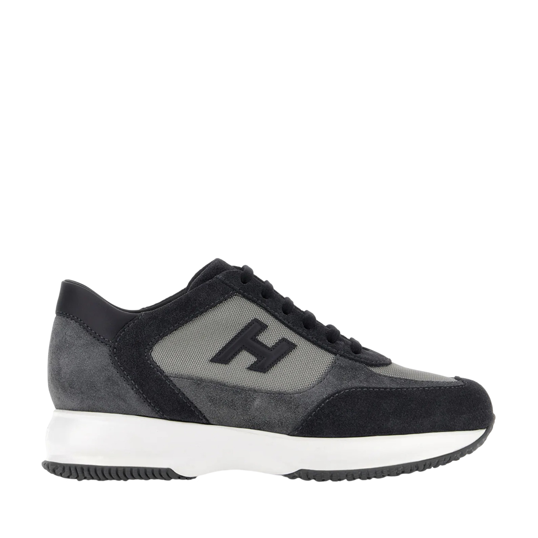 Ivory Grey Blue A sporty and versatile model, the H-Stripes sneakers feature an extra-light sole with vertical stripes. The upper, with a compact and balanced design, is distinguished by an H that extends along the entire side. The upper edge, with stitching on the heel, has soft padding. This version is made of soft nappa leather with a memory foam insole that ensures cushioning. Hogan H-Stripes men's sneakers Made in Italy Nappa leather upper Side H in suede Smooth leather details 8 mm memory foam insole EVA sole Total height 4.8 cm Care and maintenance instructions included Fabric case included Includes an additional pair of laces