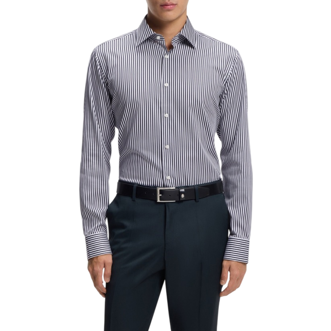With its classic striped pattern and easy-iron finish, this BOSS Men's shirt is the perfect choice for any professional look. Regular fit. Crafted from breathable cotton satin. Regular fit. Kent collar. Angled cuffs.