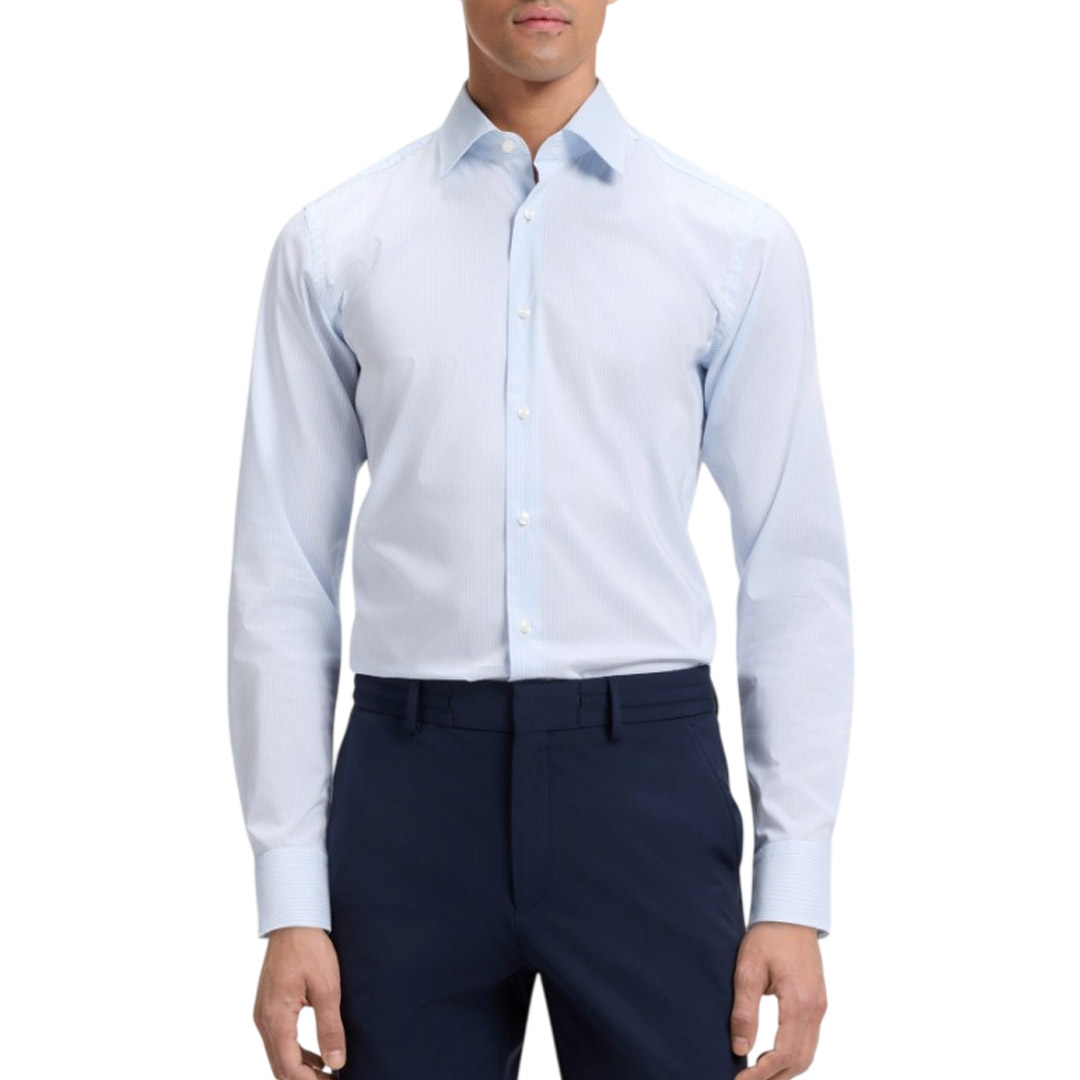 With moisture management and temperature regulation, this innovative shirt by BOSS Men is a business essential. Slim fit. Stretch cotton blend with vertical stripes. Slim fit. Kent collar. Round cuffs.
