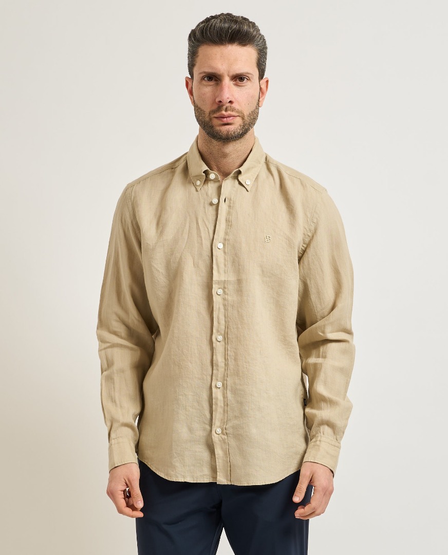Crafted from summer linen, this essential BOSS Men's shirt has a comfortable regular fit. Embroidered logo on the chest and button-down collar. Regular fit. Button-down collar. Round cuffs. Standard length.