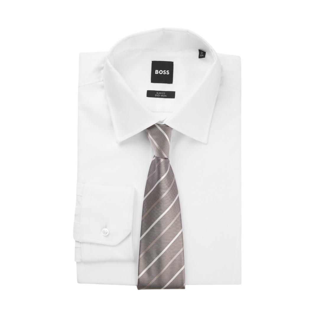 Crafted from a soft silk blend, this BOSS Men's tie is a modern take on a classic. Featuring diagonal stripes in two different shades, it measures 150 x 7.5 cm. Length: 150.0 cm. Width: 7.5 cm.