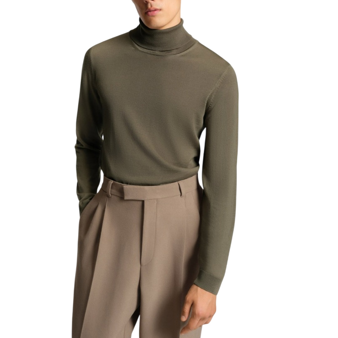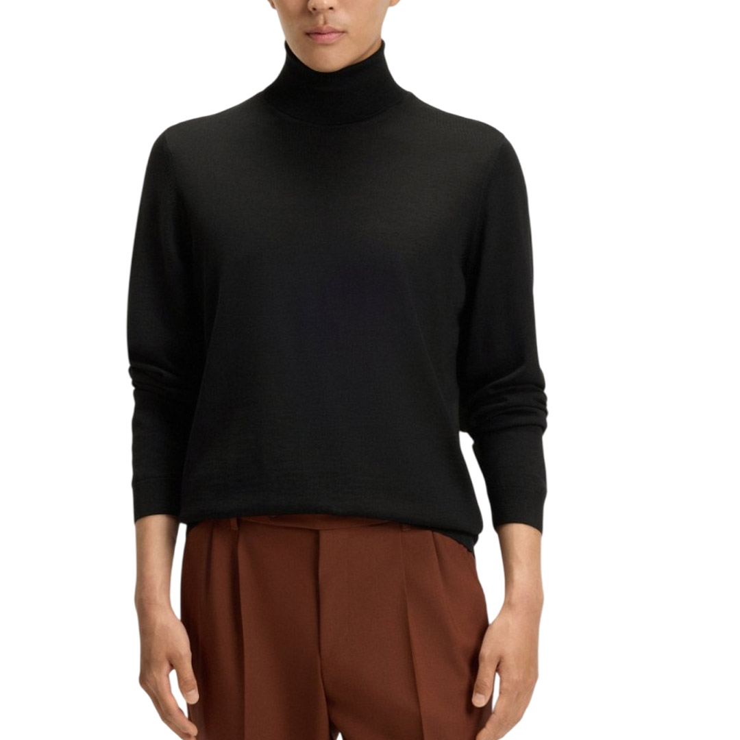 A slim-fit sweater by BOSS Men's in breathable virgin wool that's perfect for any season. This piece is crafted from wool sourced from responsible farms. For us, being a responsible farm means being mulesing-free and adhering to the Five Freedoms standards for animal welfare. Stand-up collar Long sleeve Ribbed cuffs Standard length