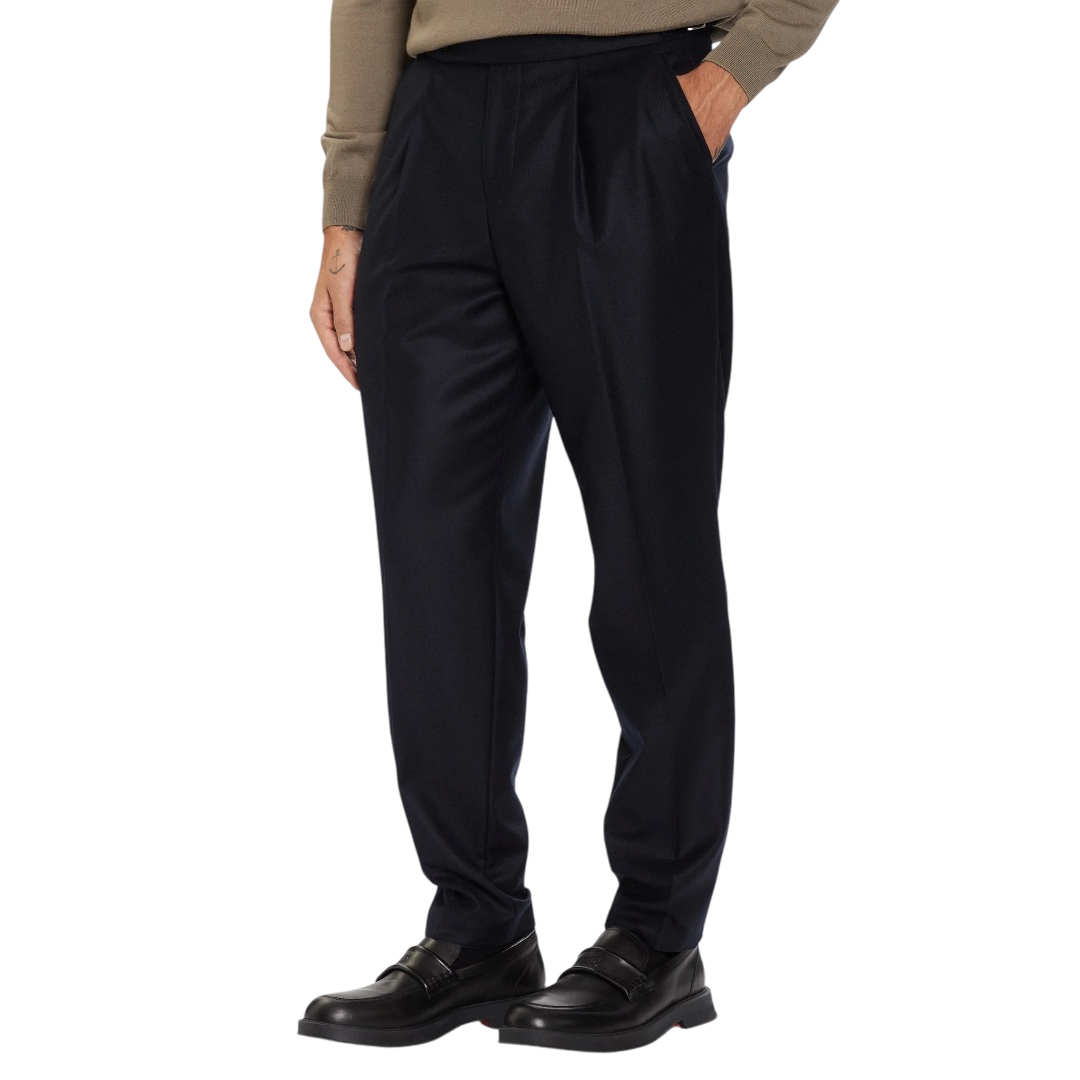 Featuring side adjusters for maximum comfort, these BOSS Men's trousers are perfect for any occasion. Melange virgin wool. Slim tapered fit with pleats at the front. Tapered fit. Button and zip fastening. Buckle fastening. Pleated front. Lower front pockets: Slit side pockets. Lower back pockets: Welt pocket. Partially lined.