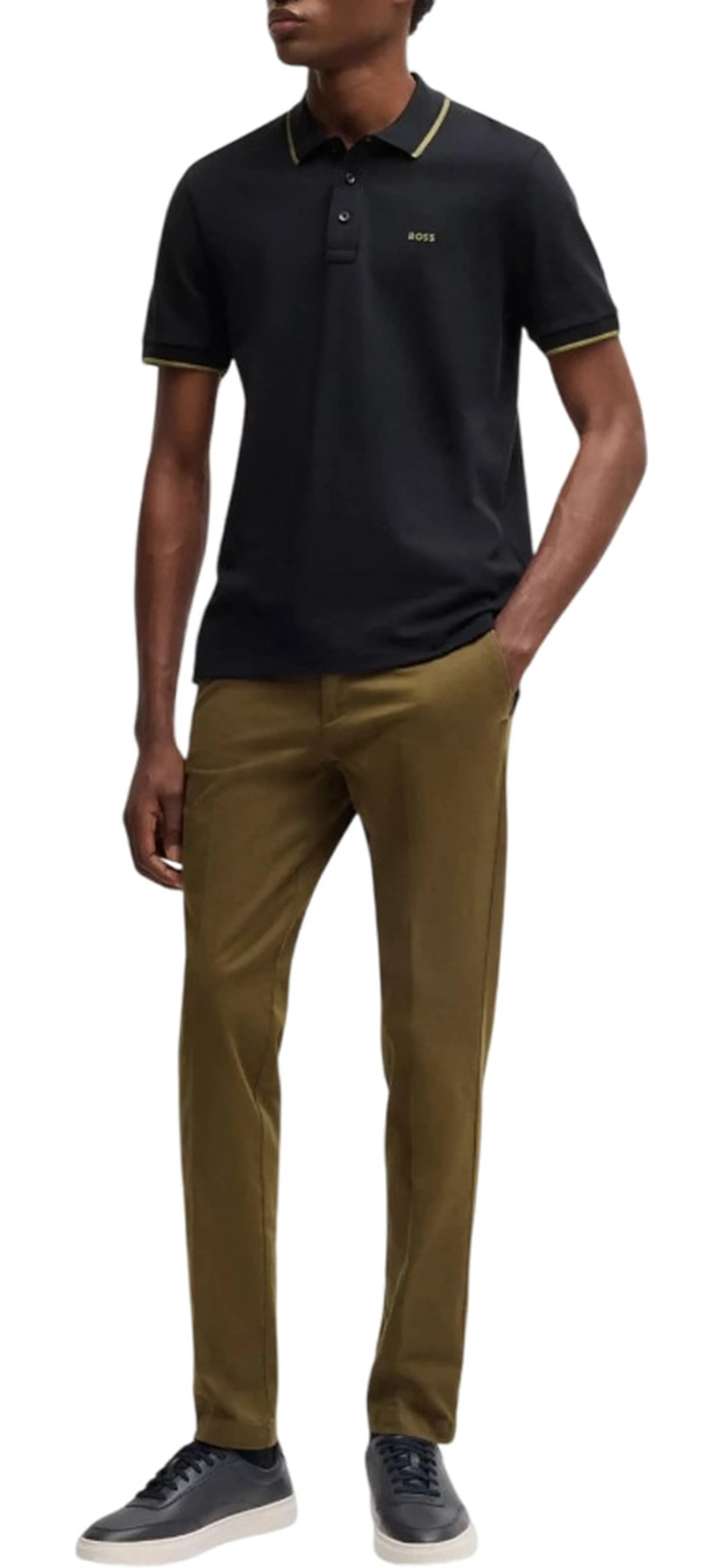 Crafted from breathable cotton piqué, this BOSS Men's polo shirt is a versatile basic. Straight fit. Smart striped trims. Regular fit Polo collar Number of buttons: 3 Short sleeve Standard length