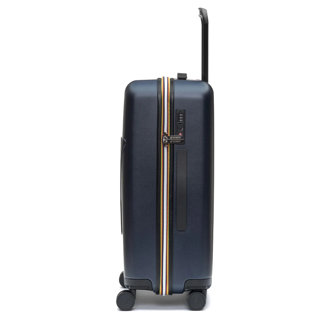 Eudoxieur is a medium-sized hardside travel trolley. This suitcase features spinner wheels for easy transport, functional internal compartments, and a TSA combination lock system, suitable for security checks at international airports. Hardside carry-on luggage. Hard shell in polycarbonate. Polyester lining with all-over logo print. Removable divider panel with mesh inserts. Small zip pocket. Laundry bag with drawstring closure. 4 360° spinner wheels. Extendable aluminum handle. Combination lock system with TSA. Luggage tag. Embossed tone-on-tone K-Way monogram. Dimensions: 64 x 43 x 25 cm. Capacity: 57 L. Weight: 3.5 kg.