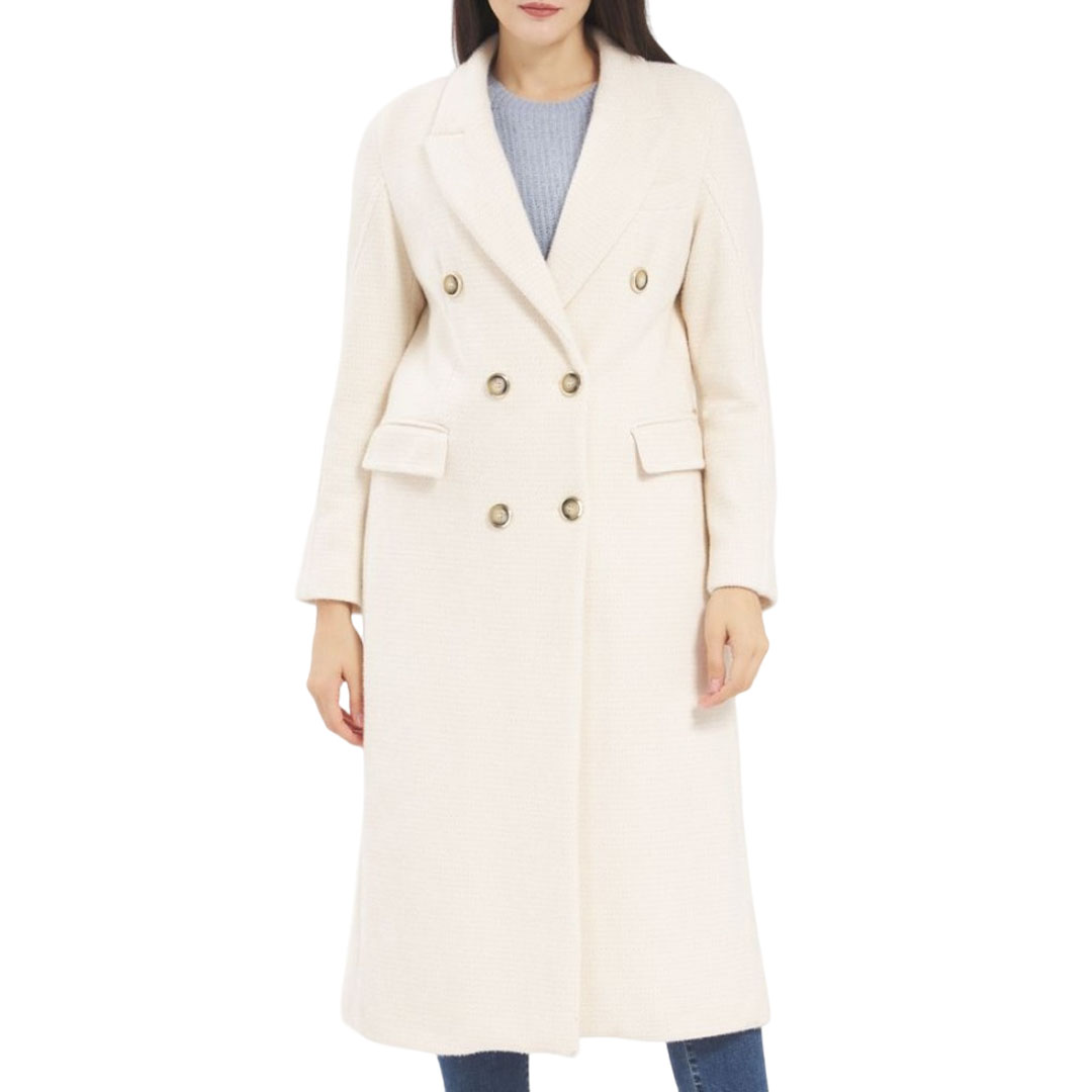 Straight-cut double-breasted coat in vintage style, featuring flap pockets and button closure. Regular fit.