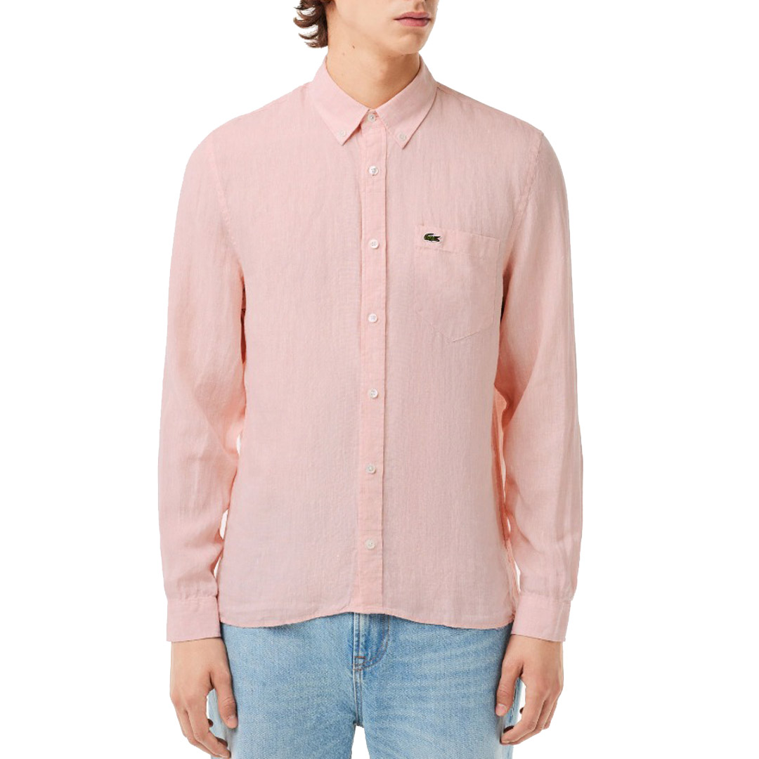 A high-quality must-have for an always impeccable everyday look. The perfect shirt, light and minimal. Regular fit, straight cut Collar with mother-of-pearl buttons Chest pocket Green crocodile embroidered on the chest Linen