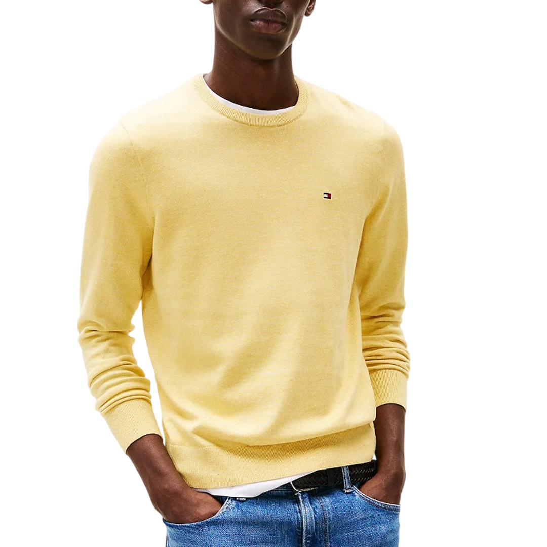 Pullover in shaved yarn of a wool and polyamide blend, produced with sustainable fibers, regular fit with long sleeves, with crew neck, cuffs and cannolè in ribbed knit and small monogram embroidered in institutional colors, patch on the chest