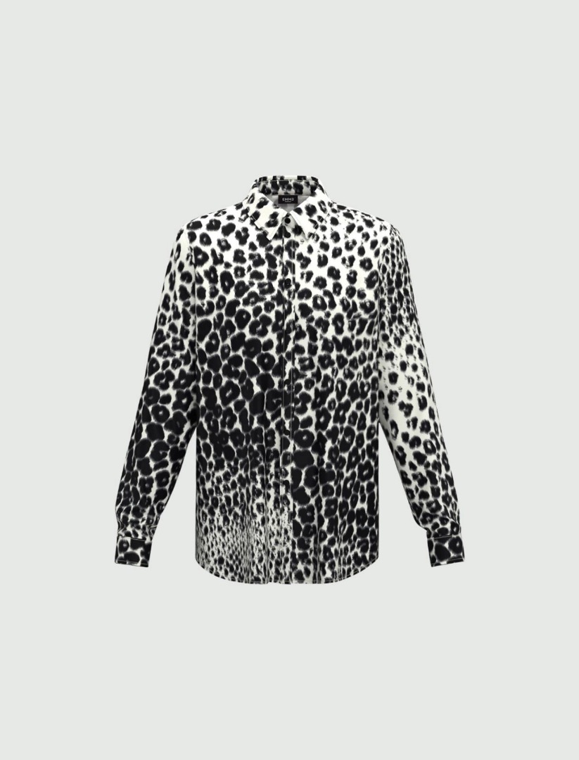 A graphic interpretation of the animal print, with a luminous black and white that makes everything more sophisticated. Essential in construction, it is versatile enough to accompany you from dusk to dawn. Printed viscose twill shirt. Straight fit. Shirt collar. Exposed placket with custom buttons. Long sleeves with buttoned cuffs.