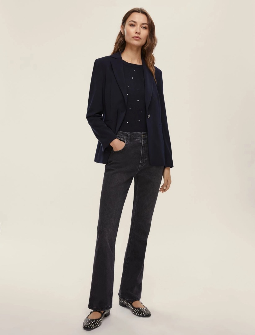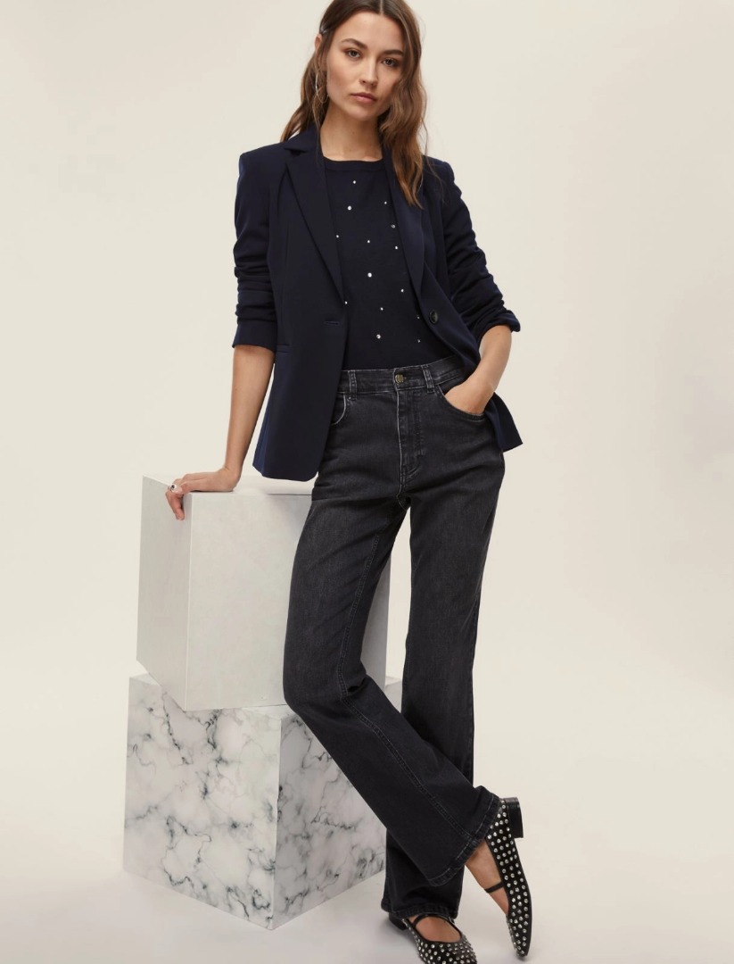 A true must-have for your urban wardrobe, the stretch blazer adds character and confidence to every day. Perfect with tailored pants for a flawless business look, stunning with denim and a sparkling top. With this item, you'll receive a free surprise from Luce Beauty by Alessia Marcuzzi. Stretch technical twill blazer. Semi-fitted fit. Lapel collar. Exposed center button closure. Side welt pockets. Lined.