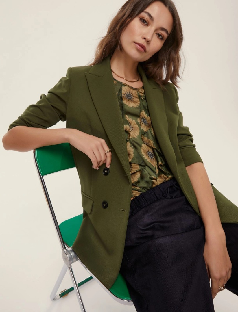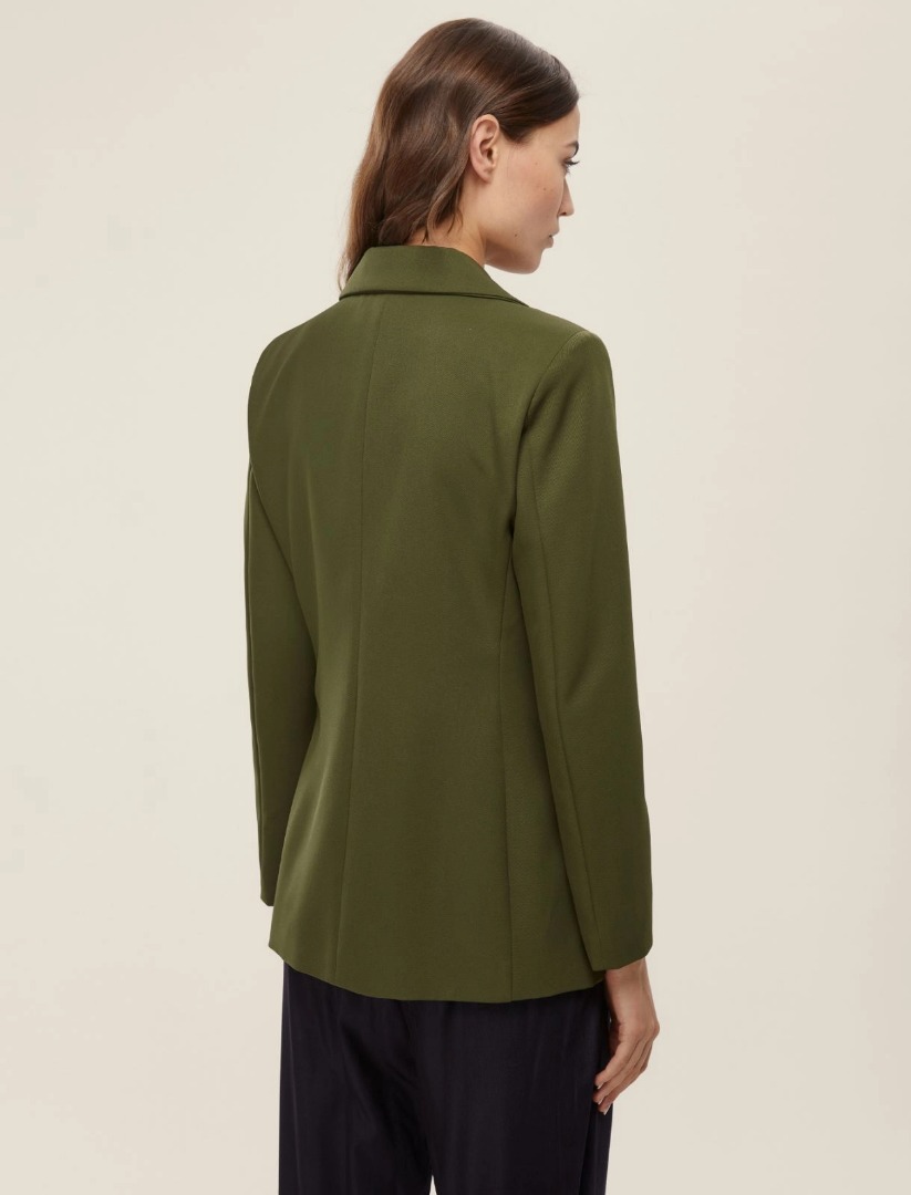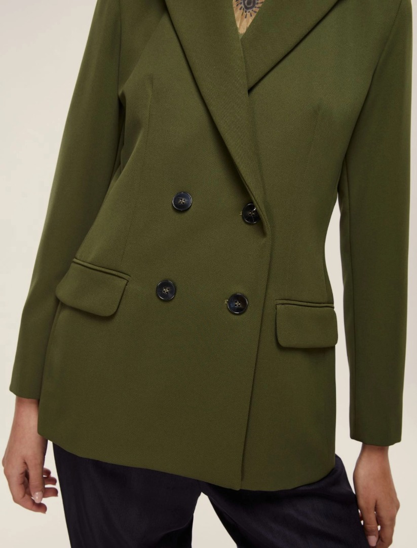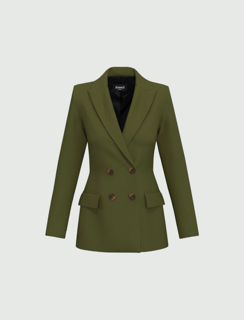 The formality of the double-breasted jacket is revisited with contemporary aesthetics, softened by slightly fitted shapes and a stretch fabric that hugs the silhouette. Wear open over printed blouses for a light and cool city look. With this item, you will receive a free surprise designed by Luce Beauty by Alessia Marcuzzi. Jacket in technical diagonal stretch fabric. Semi-fitted fit. Lapel collar. Double-breasted closure with four buttons. Welt and flap pockets. Lined.