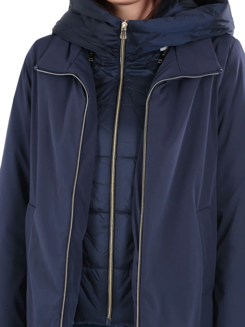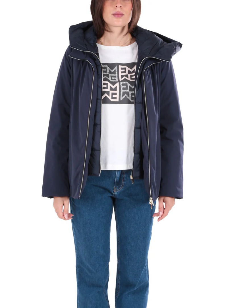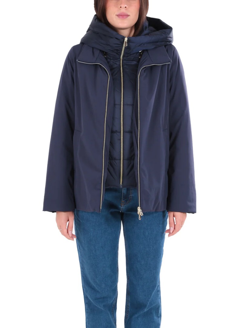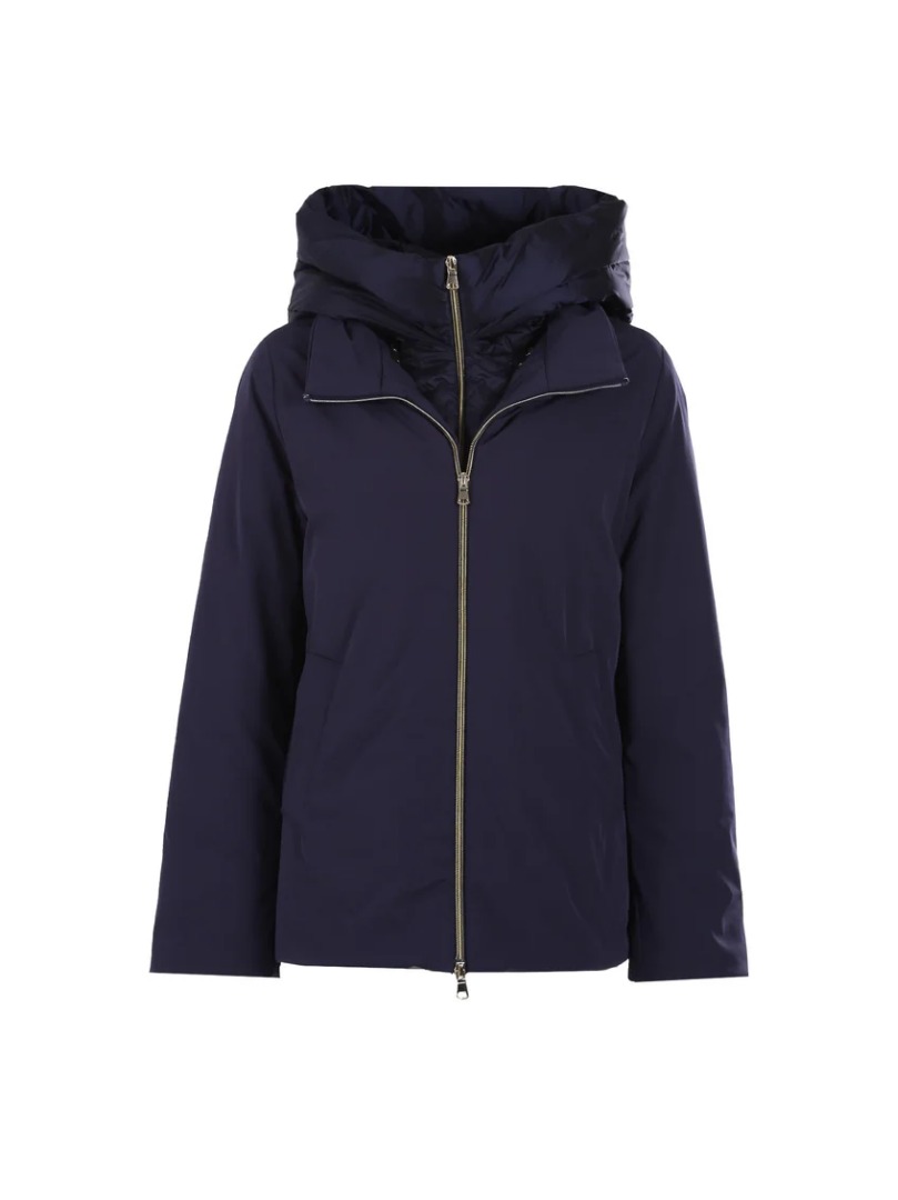 Padded jacket with a modern and functional design. Straight fit and short cut. Equipped with a two-way front zip. The quilted section and hood can be detached. The large padded hood ensures protection and comfort on cold days. Integrated high collar. Concealed side pockets.