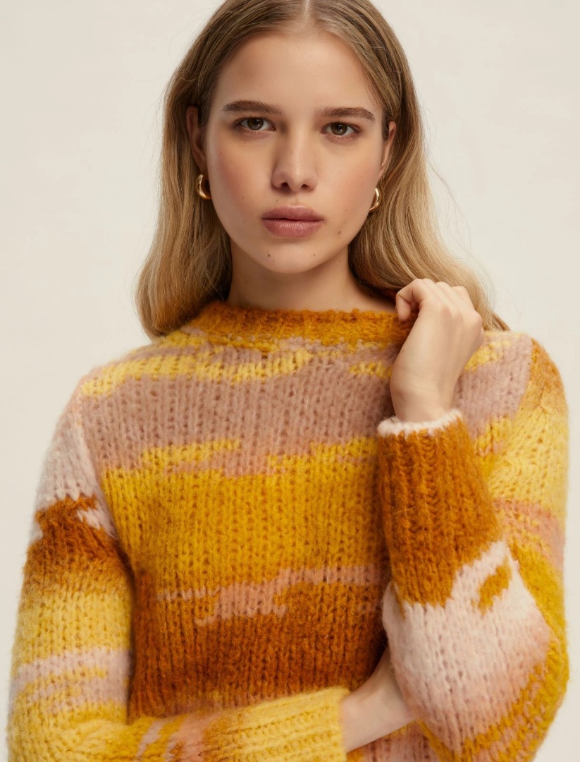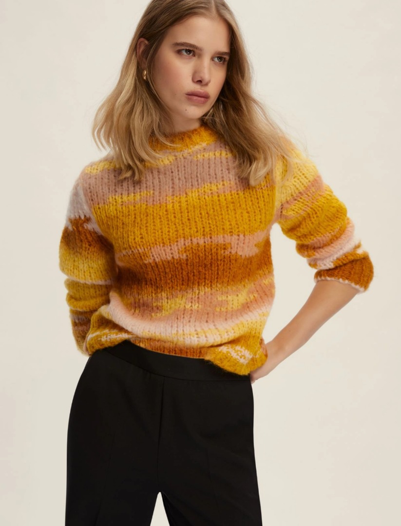 Wrap yourself in the cocoon-like warmth of this wool and alpaca blend sweater. The patterned yarn creates soft, three-dimensional waves that play with the bold lines of the fit. Wear it with denim or joggers for your off-duty days. Patterned wool and alpaca blend sweater. Boxy fit. Crew neck. Ribbed detailing on the collar, cuffs, and hem.
